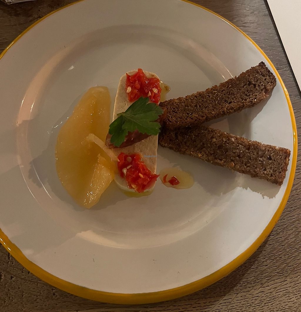 Vegan feta with fennel jam, quince, chilli and rye crisps