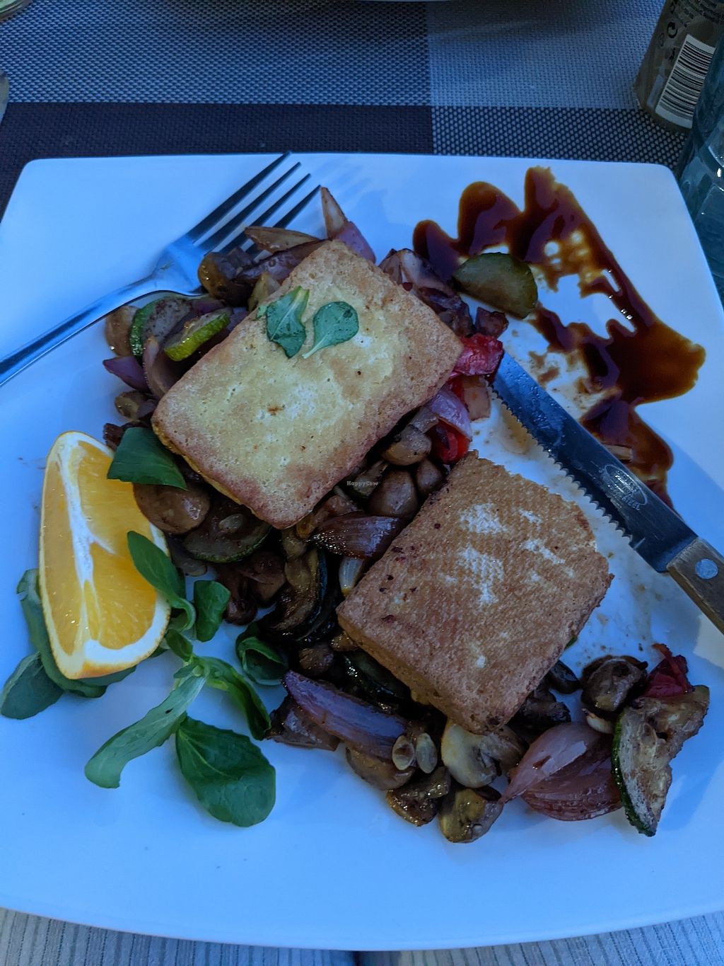 The fried tofu with grilled vegetables was very delicious, I would gladly have it again.