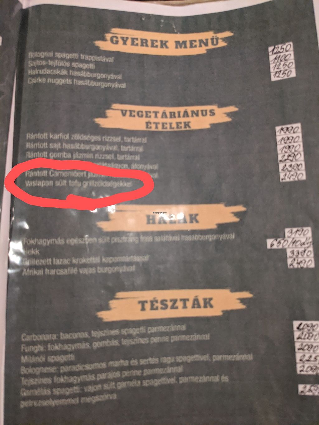 They advertise vegan food but I couldn't find many options on the English menu... Just the vegan pizza. I did find a fried Tofu with grilled vegetables on the Hungarian menu though (highlighted in the pictures) and that was really tasty. Would happily have it again.
