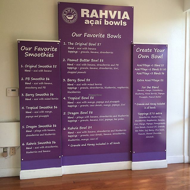 Offers acai bowls with various fruits. Everything is vegan except for the granola. Closed Jun 2019.