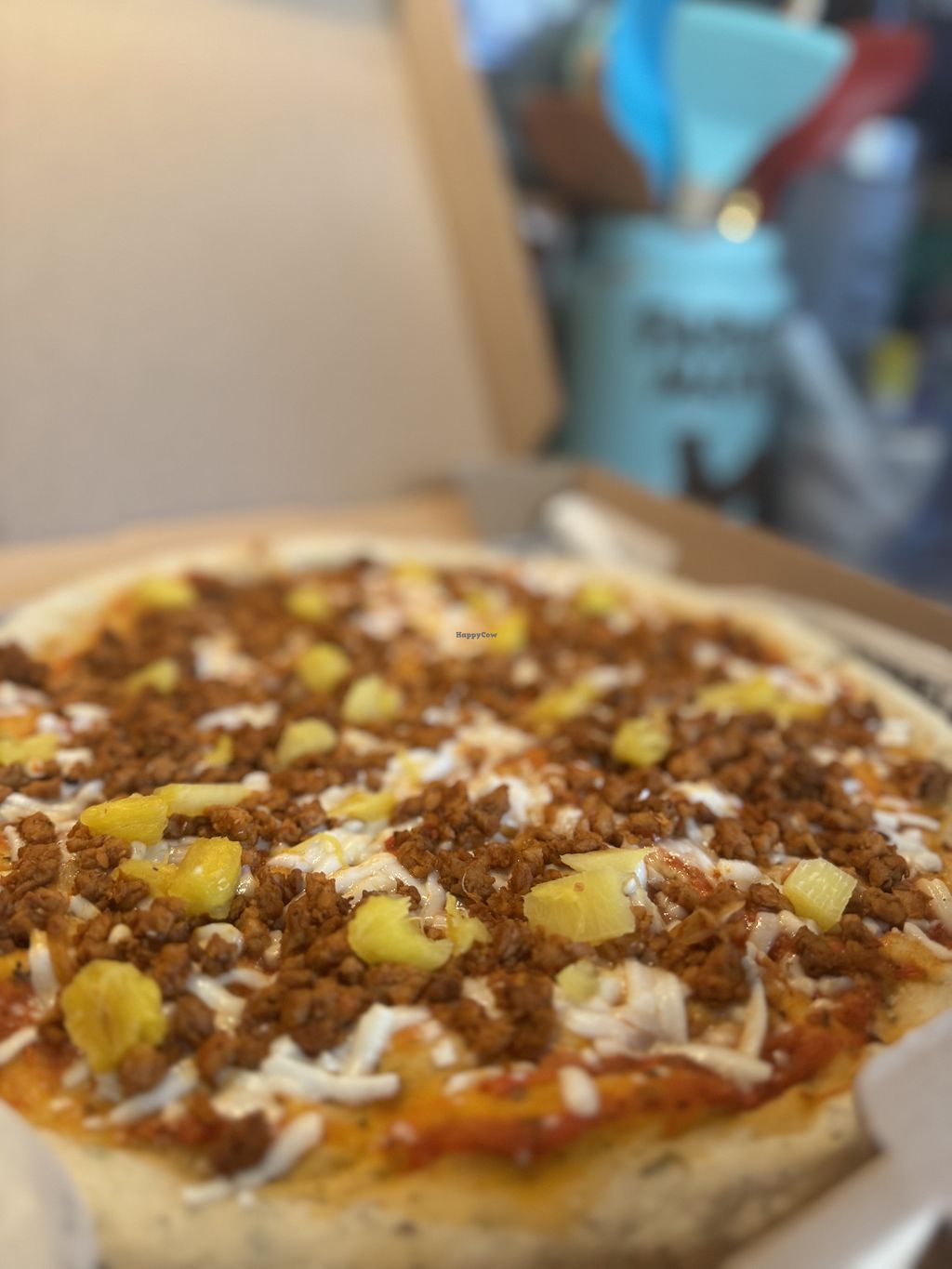 Close-up of the "pastor” pizza