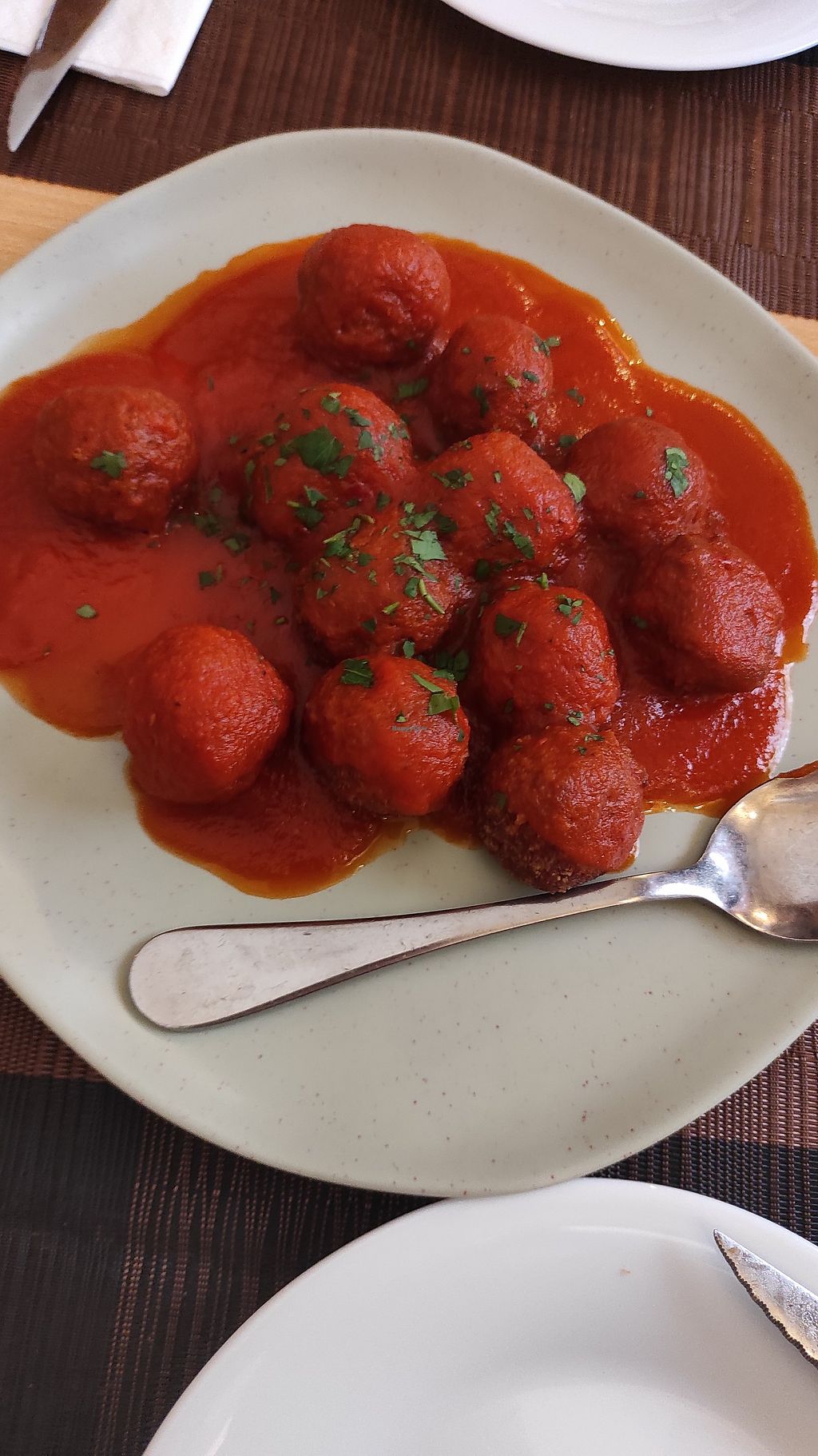 We had the menu and a couscous, it was okayish but greassy and even being the first costumers of the day, one of the 2 offered vegan desserts in the daily menu (rice pudding with almond milk) was offered but not available. So only fruit for vegans😒