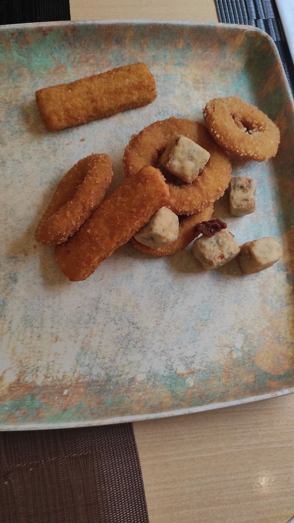 Tortitas de tofu: De sabor bastante bueno, no me gustó demasiado que fuera frito, no noté apenas el tofu, venían acompañadas de una especie de all i oli. La cantidad de tortitas era suficiente para una persona.