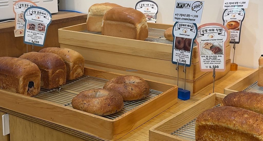 A vegan bakery specializing in rice flour bread with a texture and flavor for better digestion. Located in the Vegan Mart building on the 1st floor. Breads include cinnamon nut, coconut cheese, blueberry, green tea choco and pizza, and more. Address: 서구 구덕로124번길 13. Open Mon-Fri 8:00am-8:00pm, Sat 8:00am-5:00pm. Closed Sun.