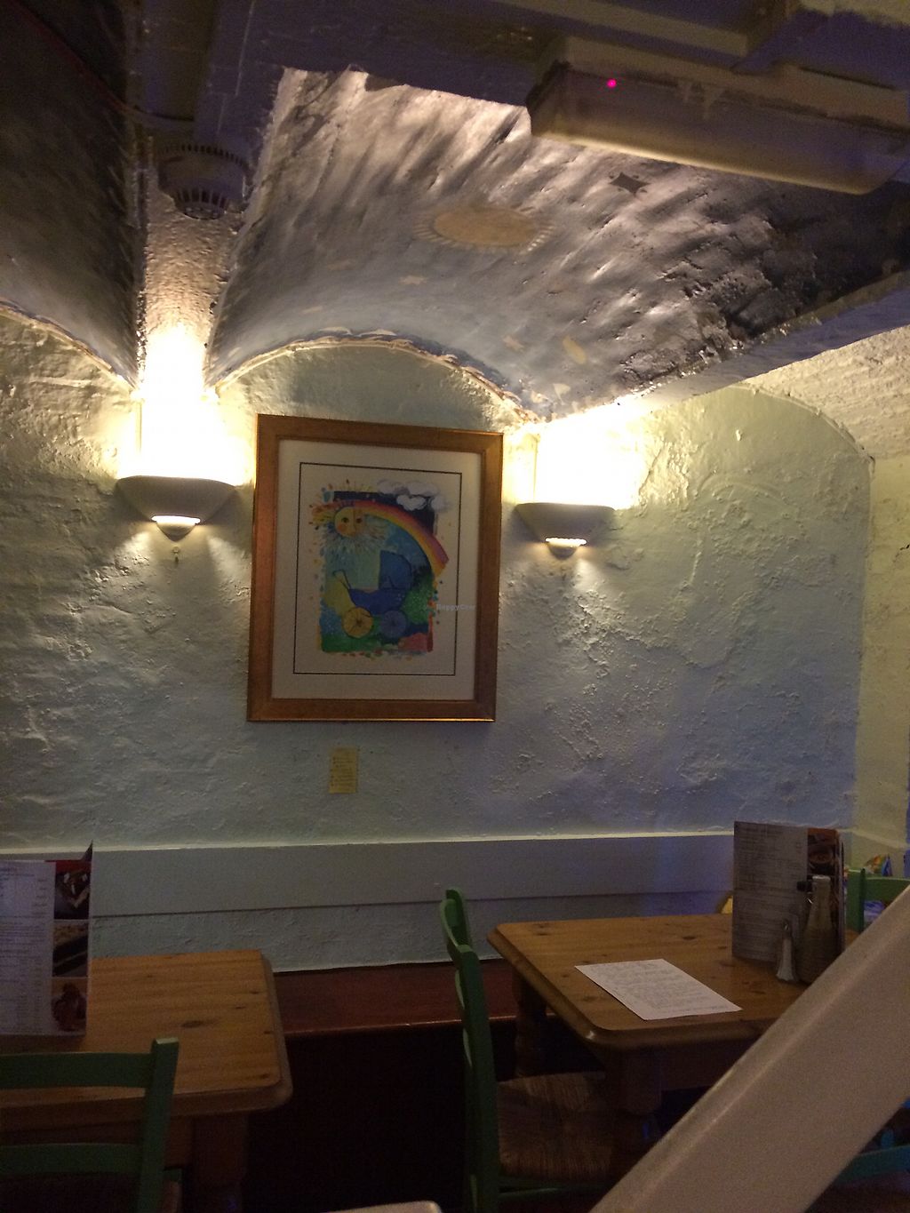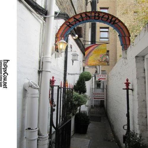 Given how expensive Cambridge is it's not surprising that the Rainbow cafe is through an alley and down stairs in a basement. The menu is impressive with a good number of daily specials, shame though that so many were not vegan when they could so easily have been!