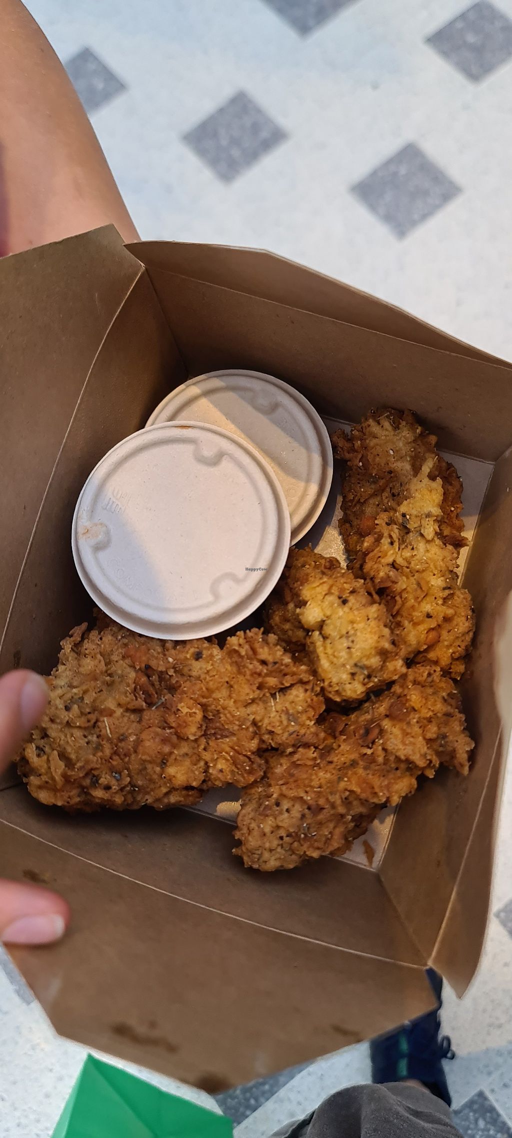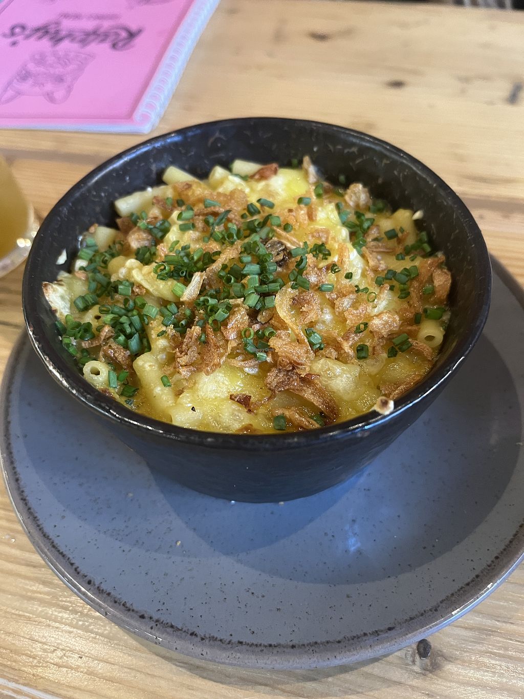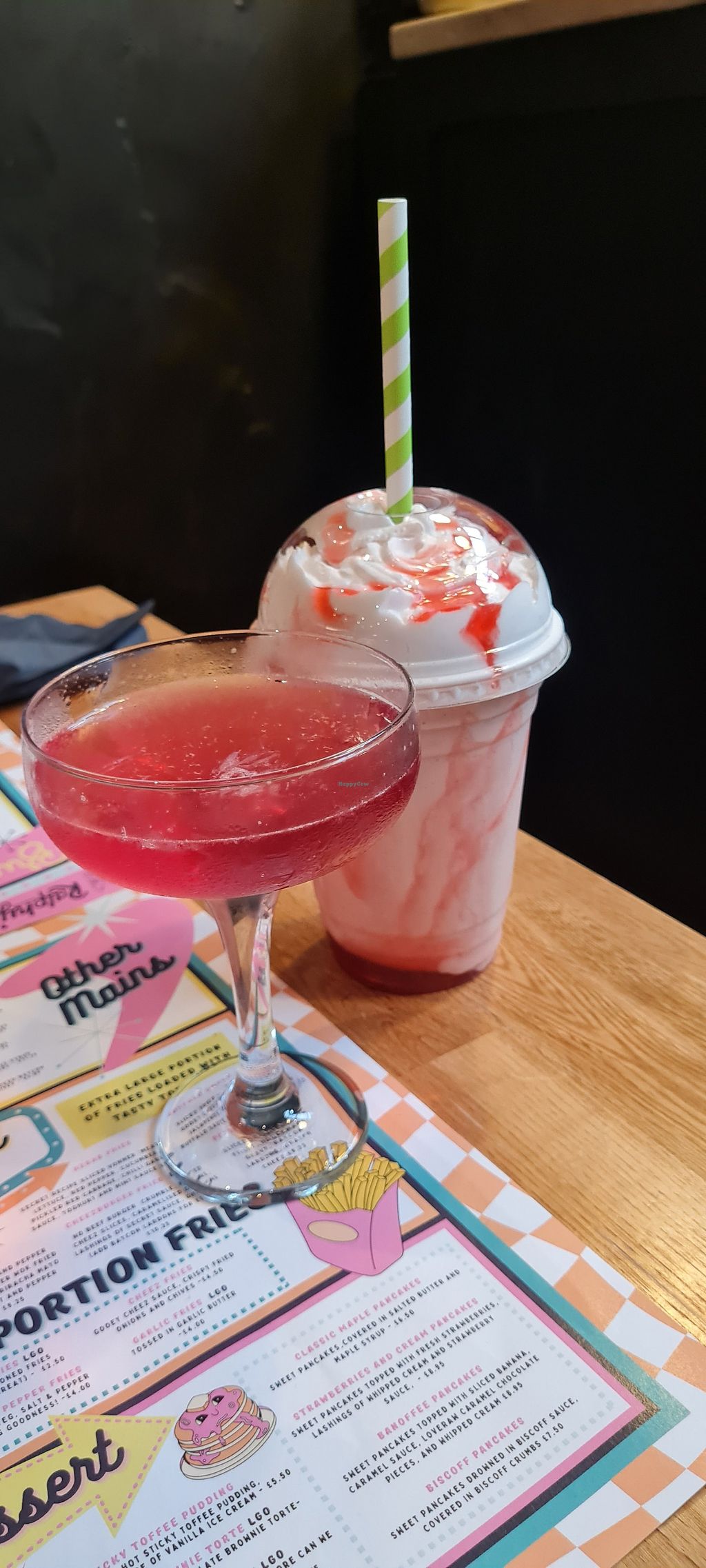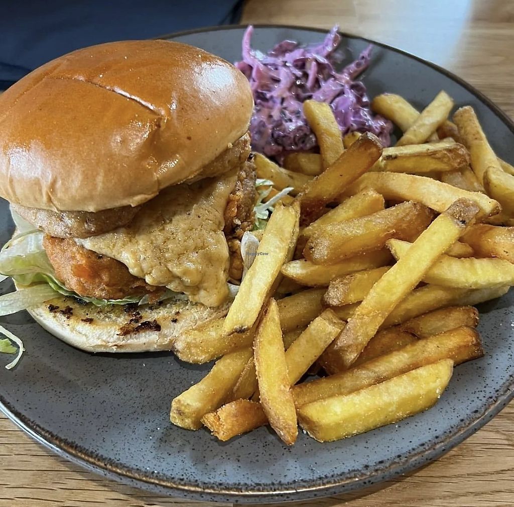 Cheese fries, sauce, slaw, chicken sandwich and shake