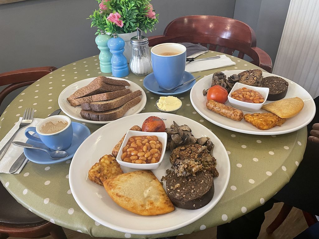 Had the vegan breakfast and saw they had chilli and baked potatoes and a few other vegan options too. Tasted okay. Staff were very friendly and remembered our daughters name. Fast service too.