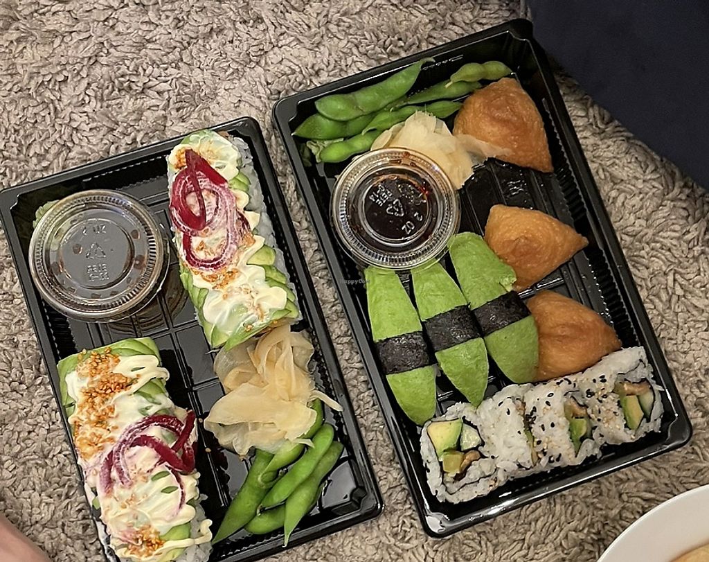 Vegan sushi roll & vegan sushi (avocado, cucumber & tofu)