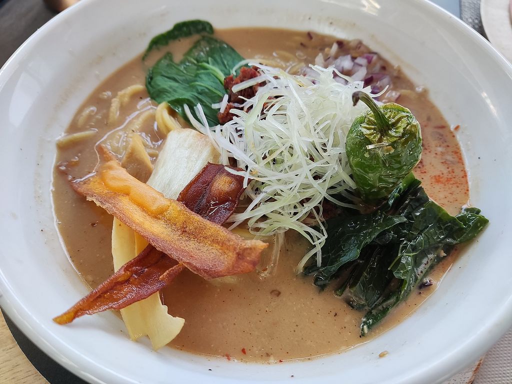 Serves meat, vegan options available. Japanese ramen restaurant offering clearly labeled vegan choices, including rice bowl, gyoza, miso ramen, shio ramen, and tantanmen. Open Mon-Sun 12:00-15:00, 18:30-22:30.