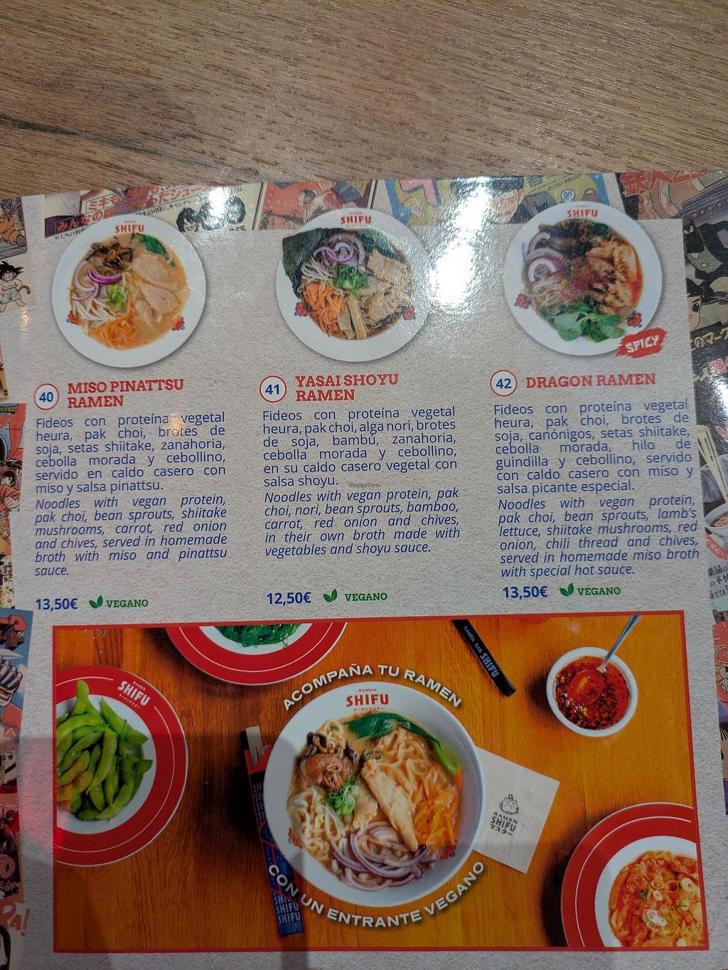 Serves meat, vegan options available. Ramen restaurant based in Spain with a separate vegan menu that includes ramen, rice / noodle dishes and starters. Open Mon-Sun 12:30-16:00, Mon-Thu 19:00-23:00, Fri-Sun 19:00-23:30.