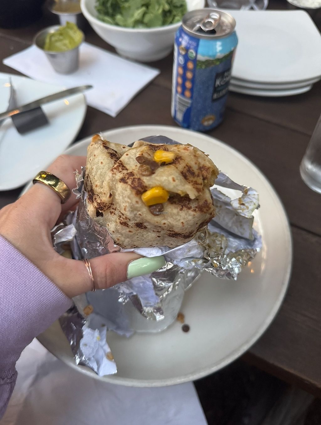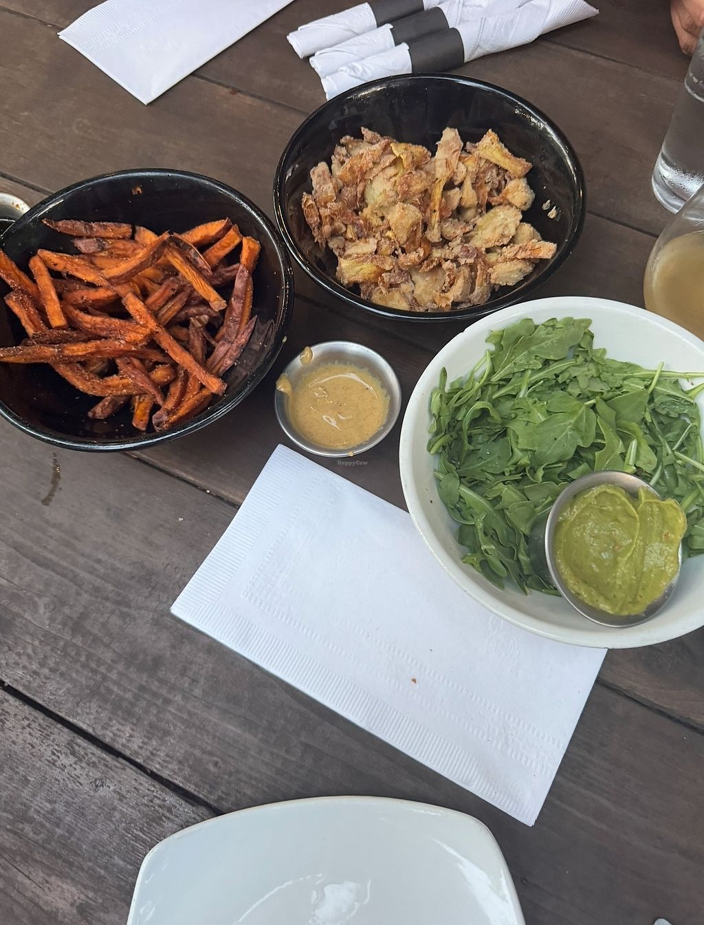 lots of vegan apps but i was only able to try the fried artichokes, and those were good! but the burrito was flavorless and overall disappointing. my dad (vegetarian) had the falafel bowl, but had the same problem.