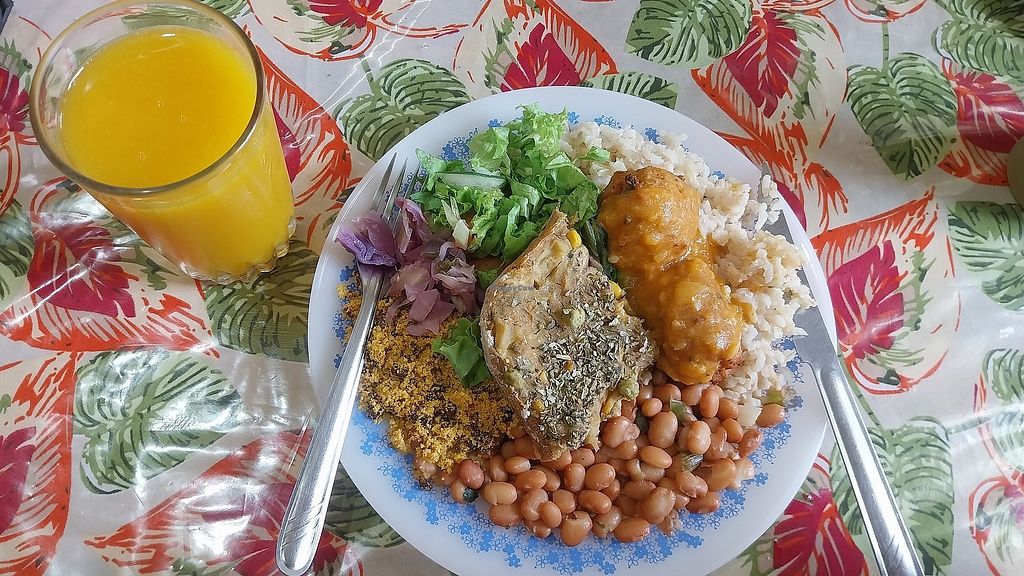 Vatapá, com arroz, salada, feijão e farofa. 💚