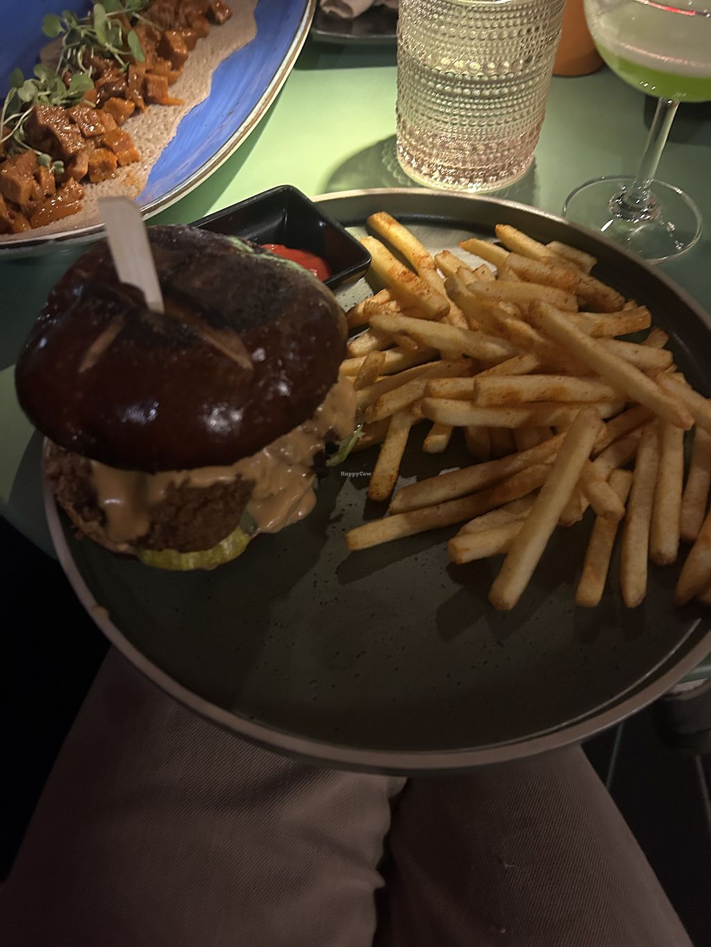 Everything in the restaurant is vegan, makes choosing what to get a lot harder! Got their “chicken” sandwich which used mushrooms as the “patty” - really tasty. Loved the music and the decor, will definitely visit again if I’m in NYC!