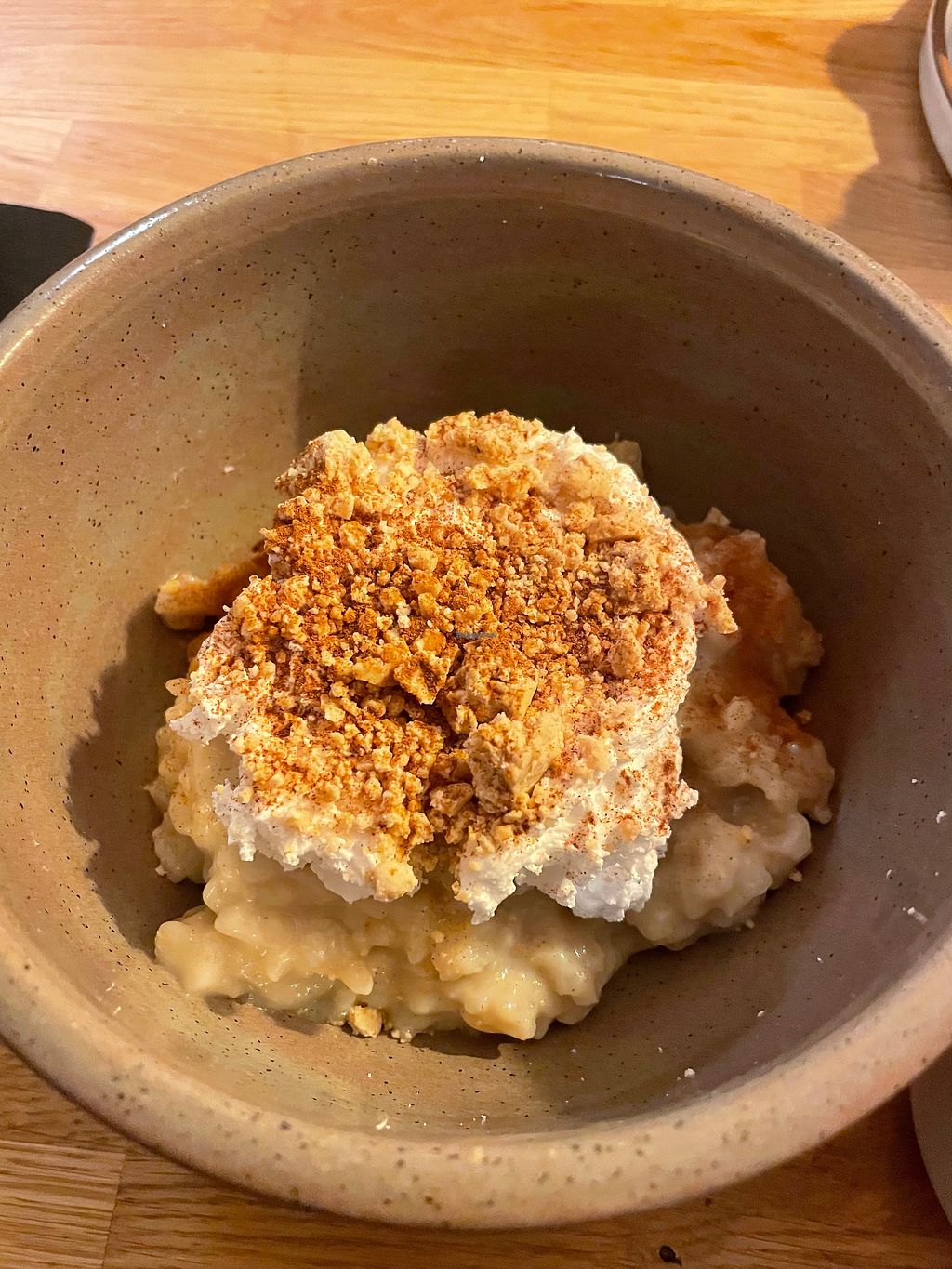 Rice Pudding with crushed peanut candy and whipped cream (SO GOOD!)