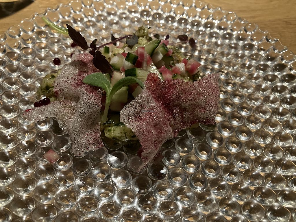 Voorop gezegd, het eten wat ik kreeg was heerlijk uitgevoerd in smaak. Maar ik at hier met iemand die niet een vegan menu had aangevraagd en we hadden een 9 gangen diner gedaan. En het was jammer om te zien dat er veel verschil zat in de gerechten, ik kreeg ongeveer 5x achter elkaar een anders uitgevoerde groente. Terwijl mijn partner een lekker soepje kreeg, een lekker gevulde kreeftravioli en stukje dierelijke proteine met aardappelpuree. Daarintegen was mijn menu bijv: aubergine op 3 manieren en daarna iets met tomaat en 1 groene asperge. En daarna paar bijzondere groentes. Maar allemaal zonder pasta, aardappel of broodje en geen plantaardige eiwitten. Ik raakte een beetje teleurgesteld omdat was benoemd dat ze echt een vegan menu konden neerzetten, alleen was het helaas niet zo vullend door gebrek aan afwisseling en puur groentes eten.