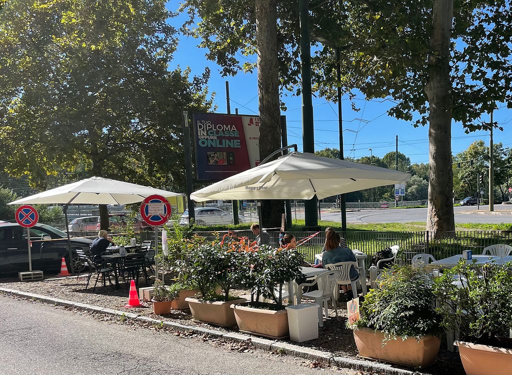 The outside view. You can see a glimpse of few tables behind the cars……