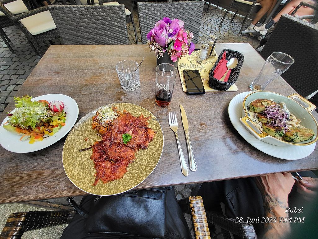 Weiße Bohnen Frikadellen mit Salat und Bratkartoffeln