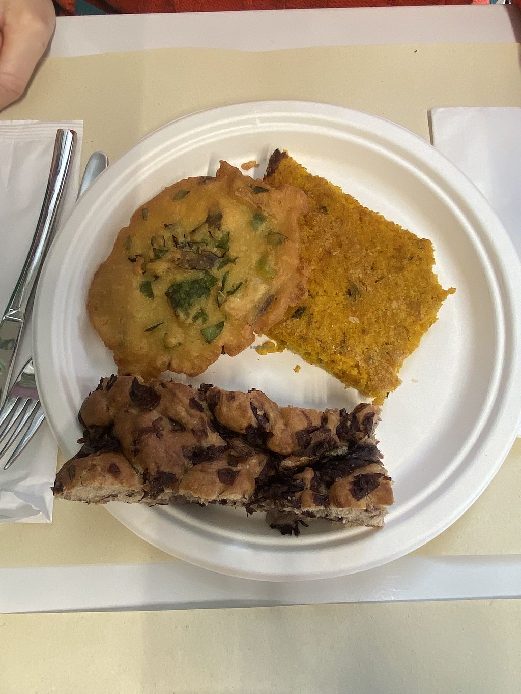 Frittelle di ceci, tortino miglio e zucca e focaccia al radicchio