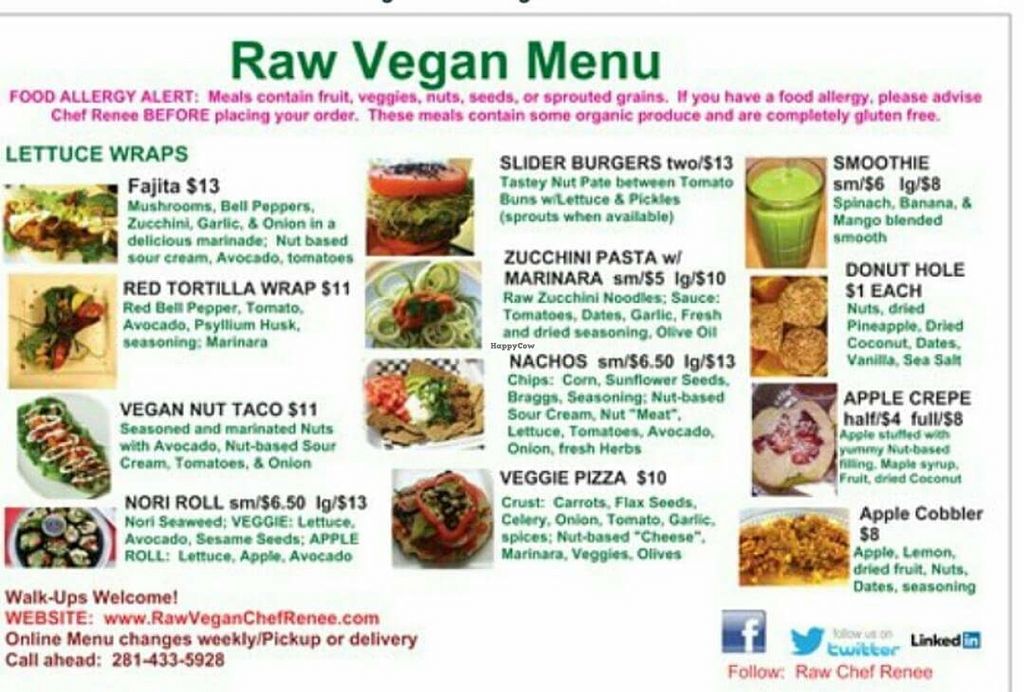 Menu of meals available for walkups at Raw Chef Renee's food trailer.