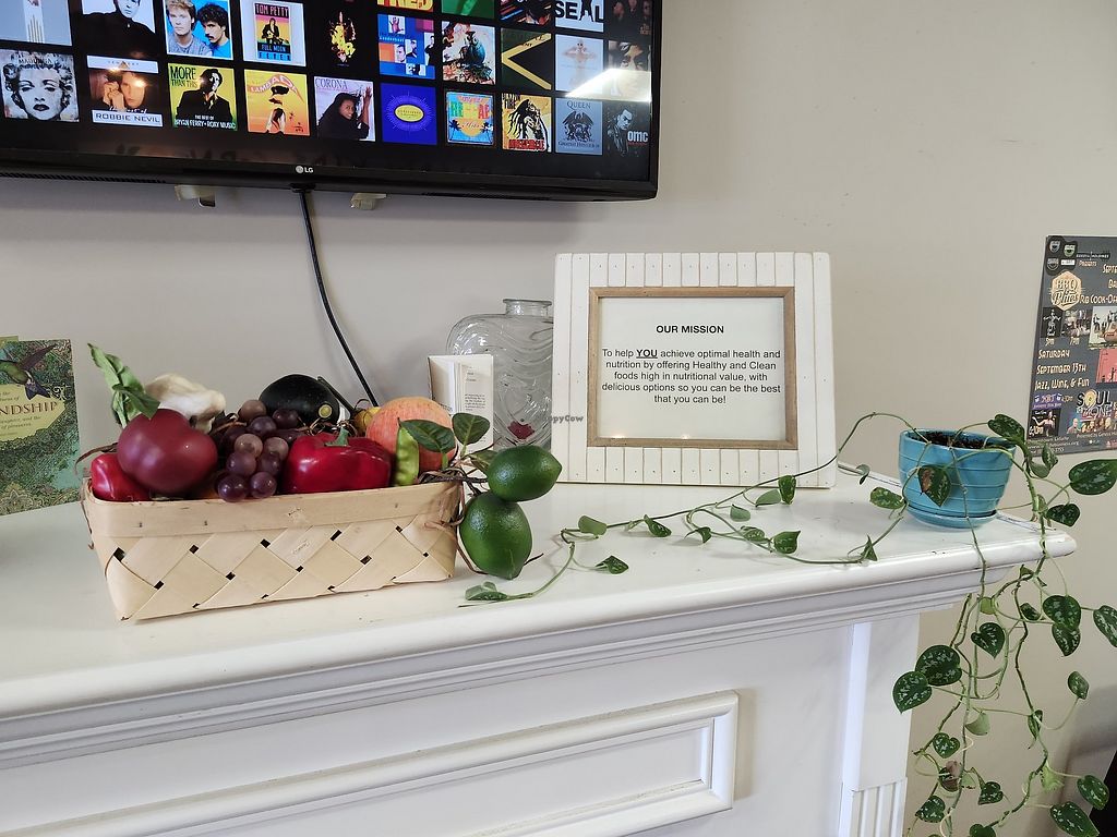 Serves meat, vegan options available. Cafe providing whole-food dishes, cold-pressed juices, acai bowls, smoothies, and wheatgrass shots. Example of food include pesto panini, cauliflower crust veggie pizza, and loaded nachos. Est. 2019. Reported to serve meat September 2022. Open Tue-Fri 10:00am-5:30pm, Sun 10:00am-4:00pm. Closed Mon & Sat.