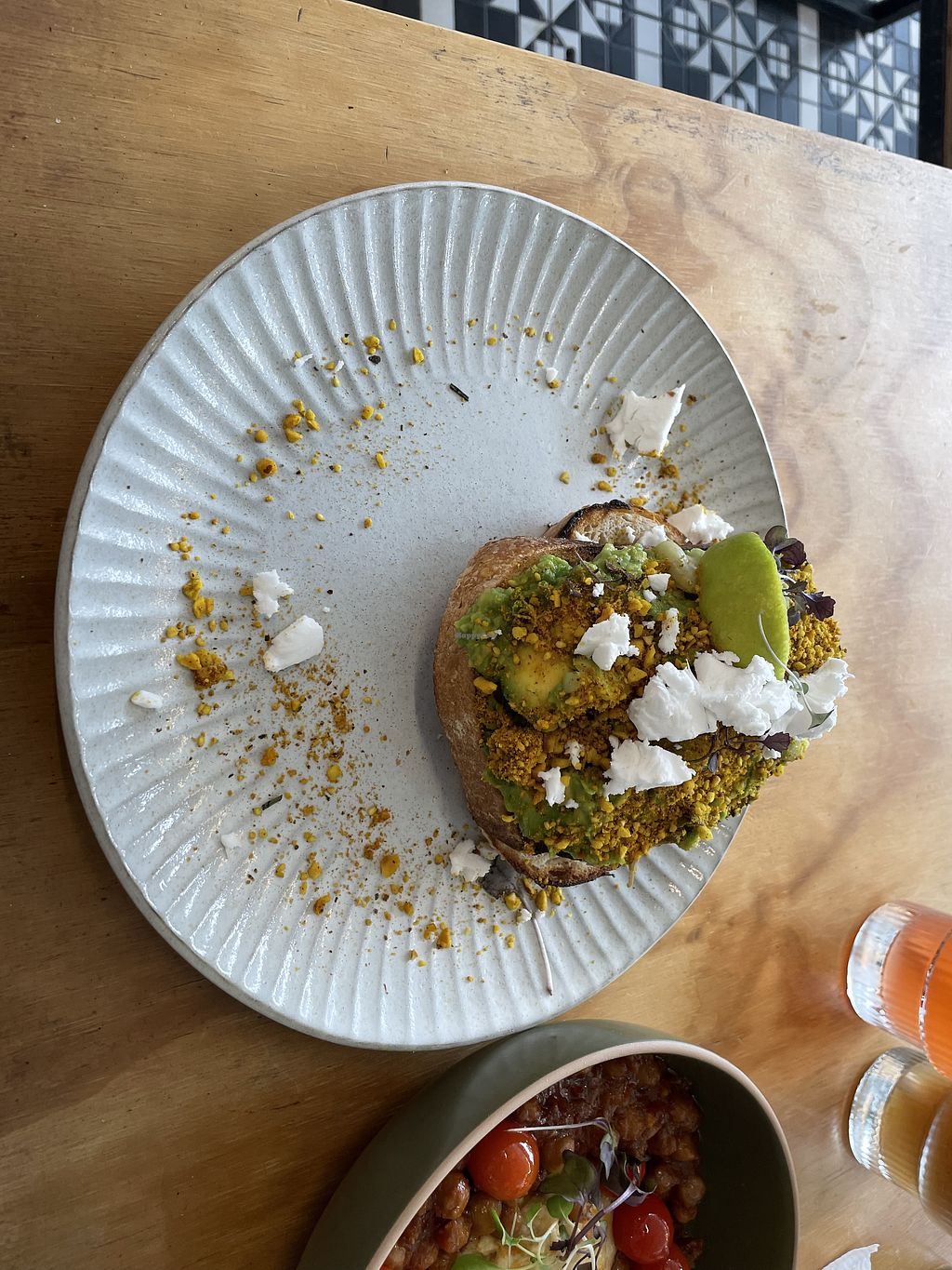 Sadly due to a recent menu change, there is one vegan option for breakfast, yep, avo toast minus the feta and other omni things.