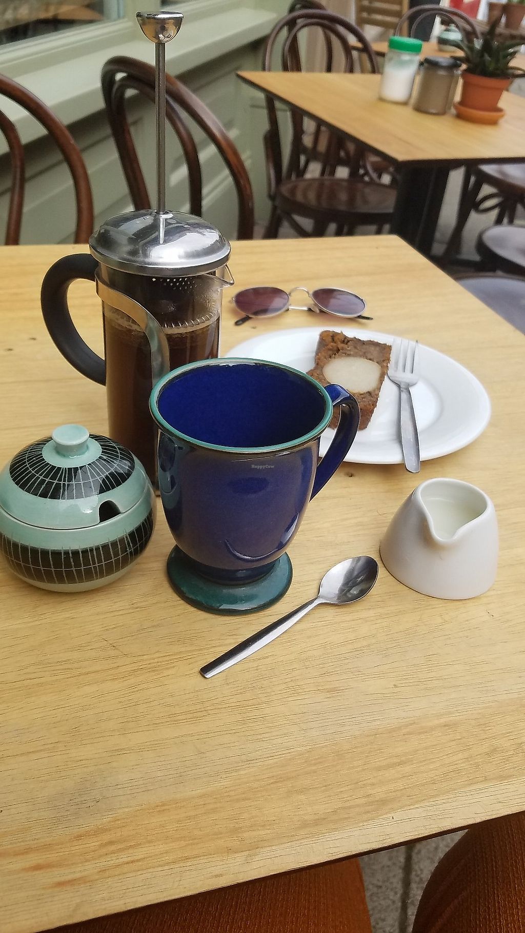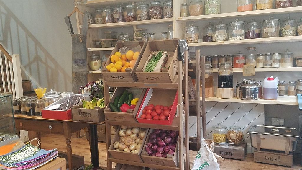 I was in Norwich for a couple of weeks and discovered this little gem , it's a refill shop with organic veg and fruit, which is great, but the best part is is the little cafe upstairs where they serve freshly baked and prepared food from the downstairs kitchen: soups , freshly made bread, pies, sandwiches, salads, vegan cheese , cakes- a lovely selection a gorgeous food in a very friendly atmosphere. Outside seats available. Get there early as the food tends to go! Agreat place for lunch