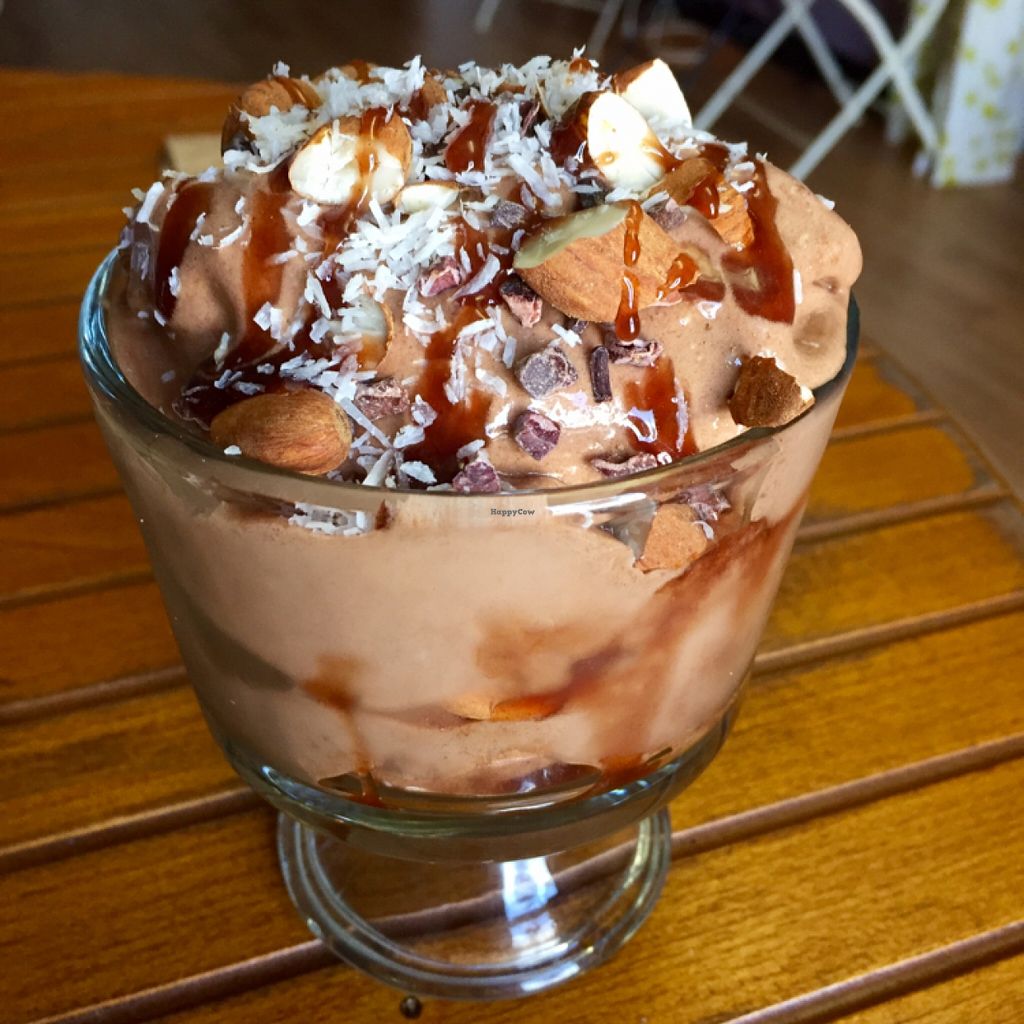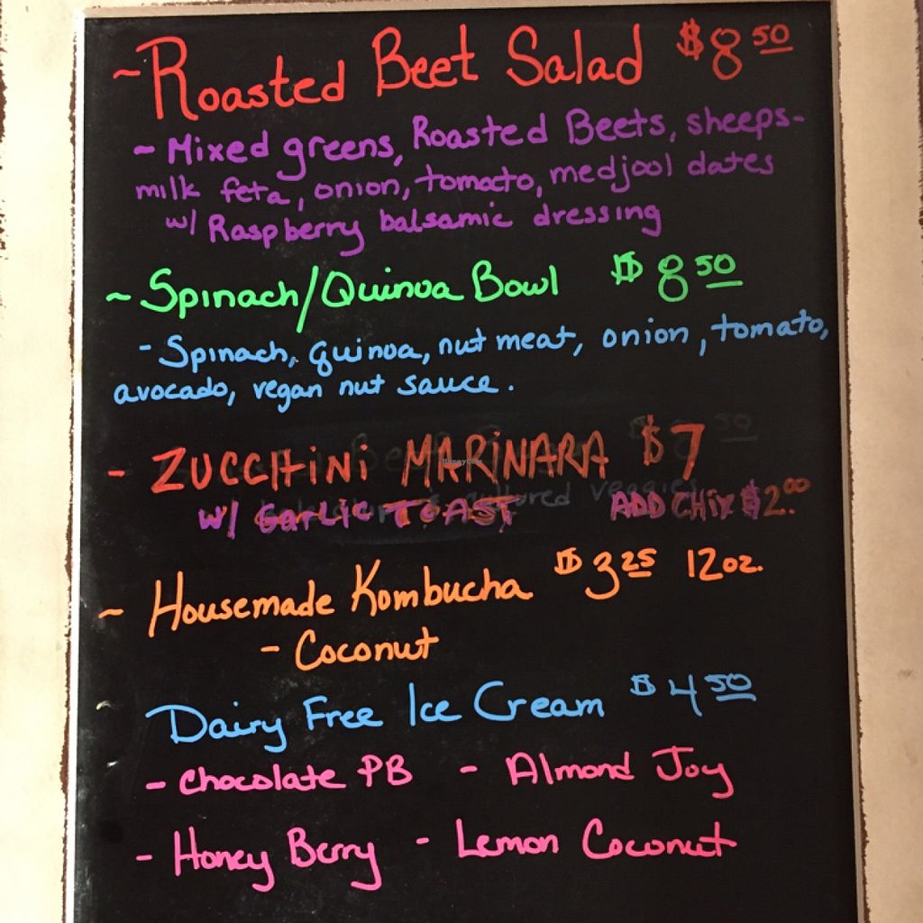 This little place is out of the way, but definitely worth looking for! So happy I found it today. The food was so delicious. The staff was very friendly. I was impressed with the quality of the food and pleased that it's all organic. I thoroughly enjoyed everything I ordered, especially the dessert. The ice cream (whipped frozen bananas), is handmade to order and is out of this world! I ordered the soup of the day, cream of broccoli, and was quite happy with my choice. Daily special zucchini marinara was very good also, but I could've done without the garlic bread. Boyfriend had the daily special roasted beet salad (no cheese) and thought it was a nice mix and very yummie. I've recommended to friends and can't wait to return!