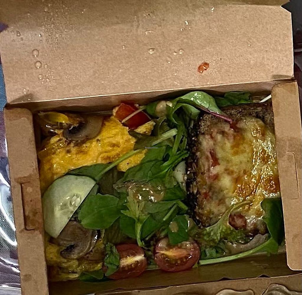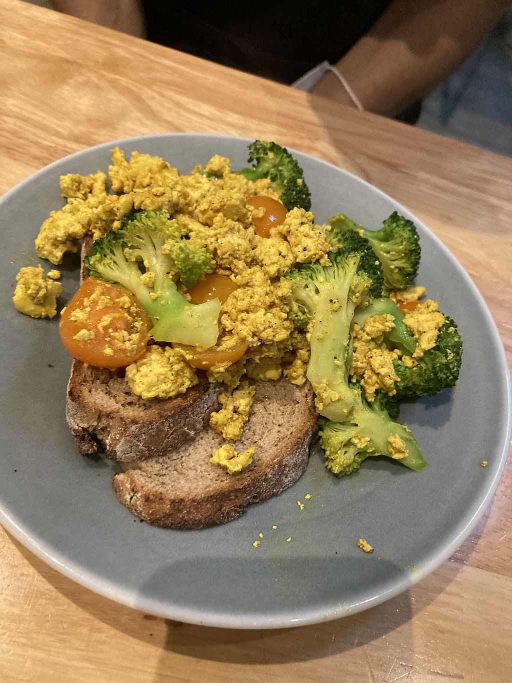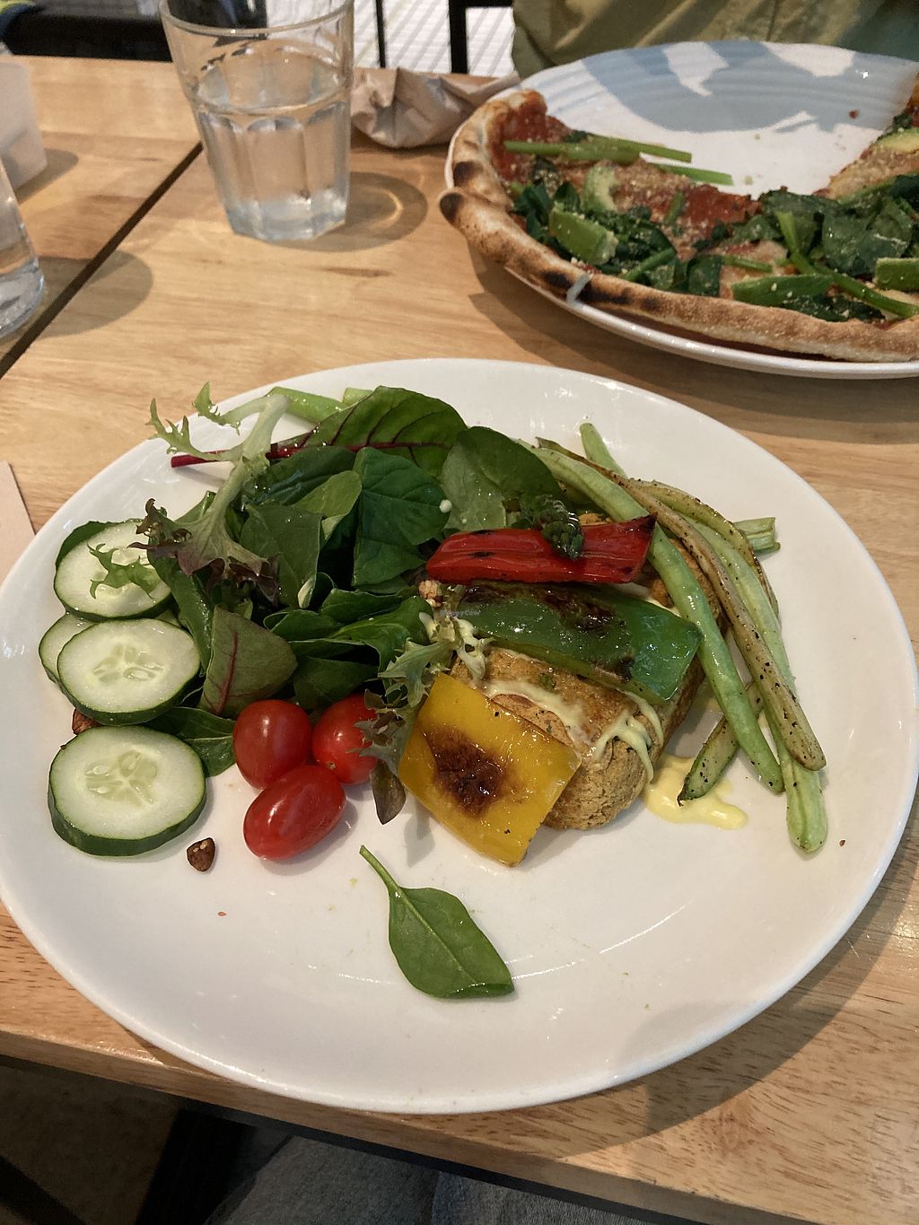 Had vegan pizza, big breakfast and dry wonton noodles, vegan marble cake and banana coconut cake.