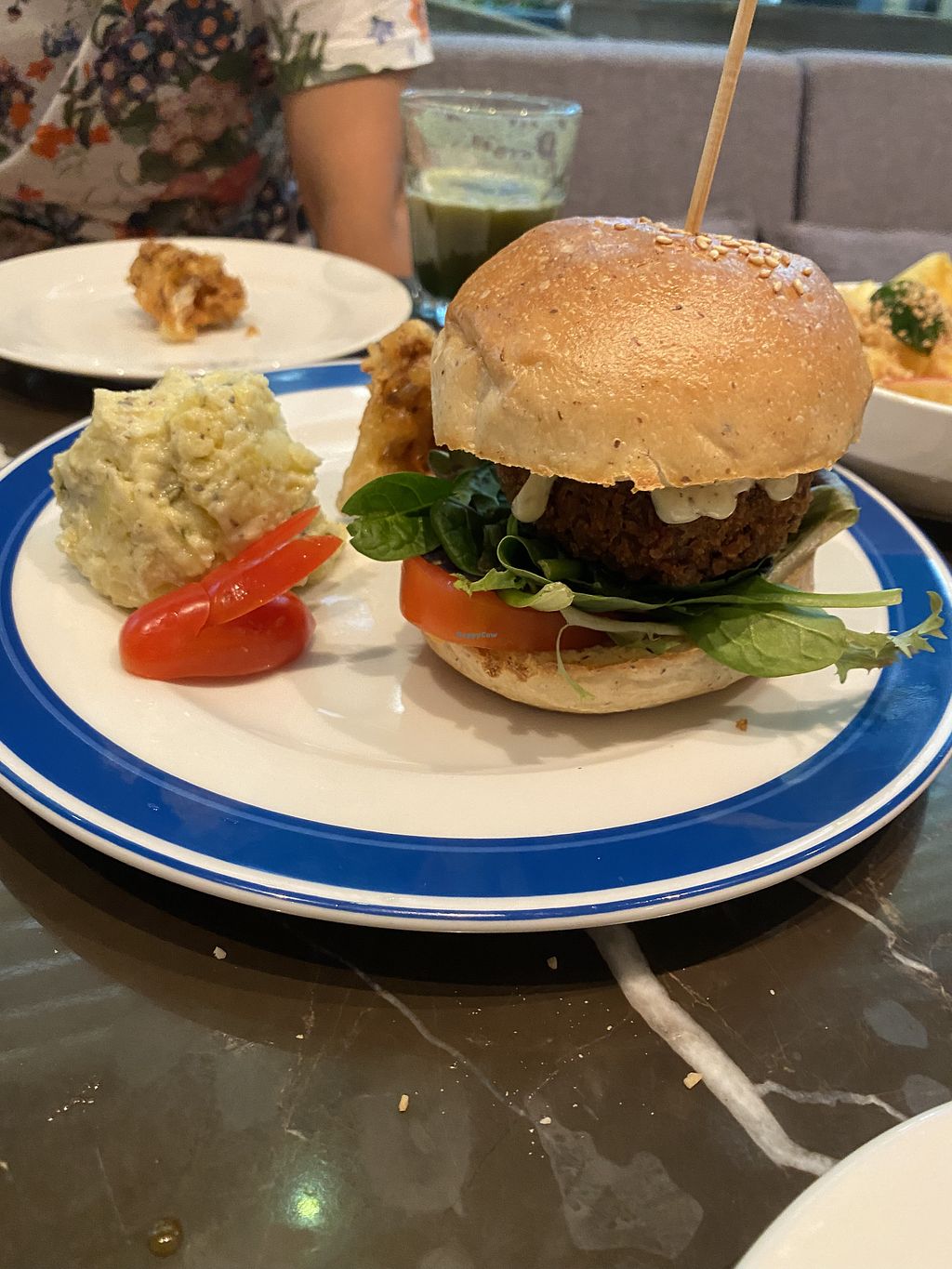 Their herbs battered portobello mushroom burger, stacked with fresh greens and vegan mayonnaise is great, came together with boiled corn kernels and fried potato wedges. The fried portobello mushroom patty is fresh, hot, crispy yet juicy. The potato and sweet potato wedges are baked and salted, corn kernels are juicy, overall very satisfying, worth trying
