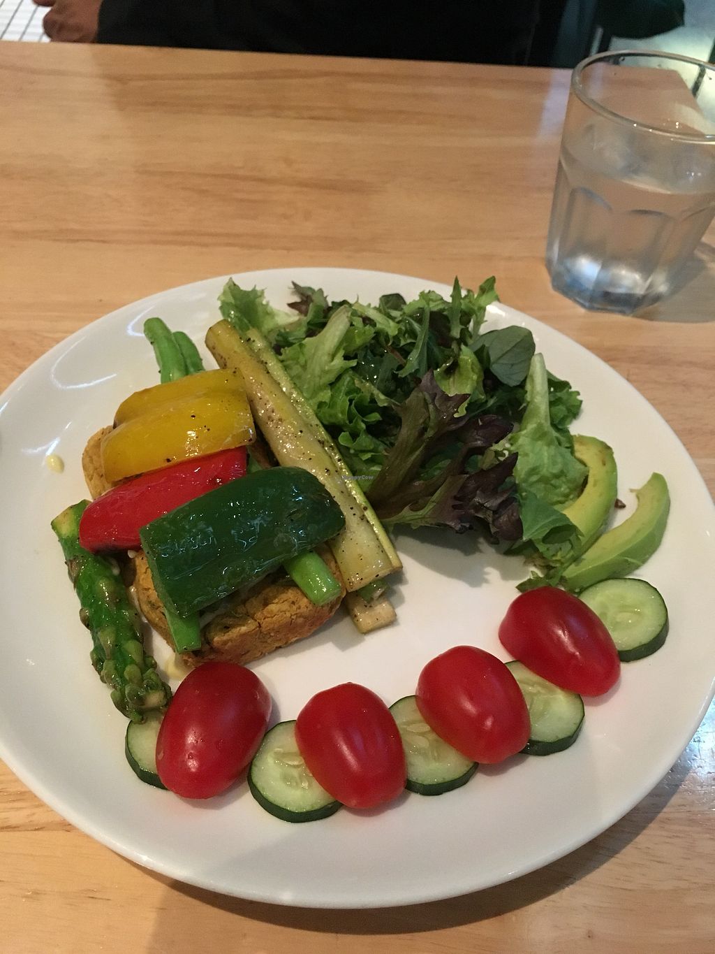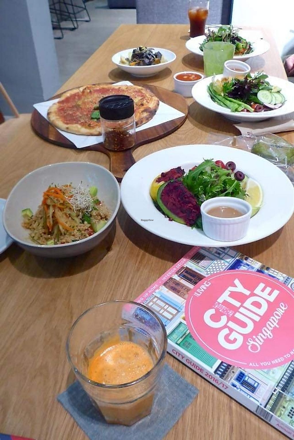 This place is an oasis for the traveler who likes to eat healthy but doesn't want to sacrifice taste. Beautiful, delicious food with plentiful vegan options clearly marked, fresh colorful ingredients, great service, reasonable prices on a nice clean handsome space. I had the dumpling soup, with homemade veggie dumplings and a side of hot chili sauce. Also the house Salad "Real Food Mix" which is vegan. I would come back whenever in Singapore.