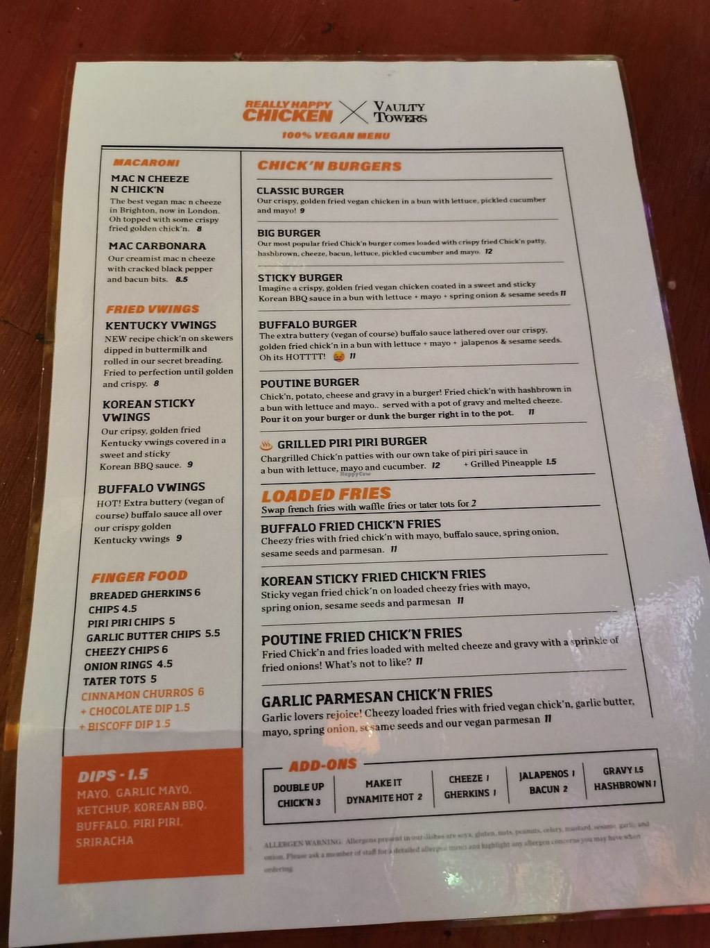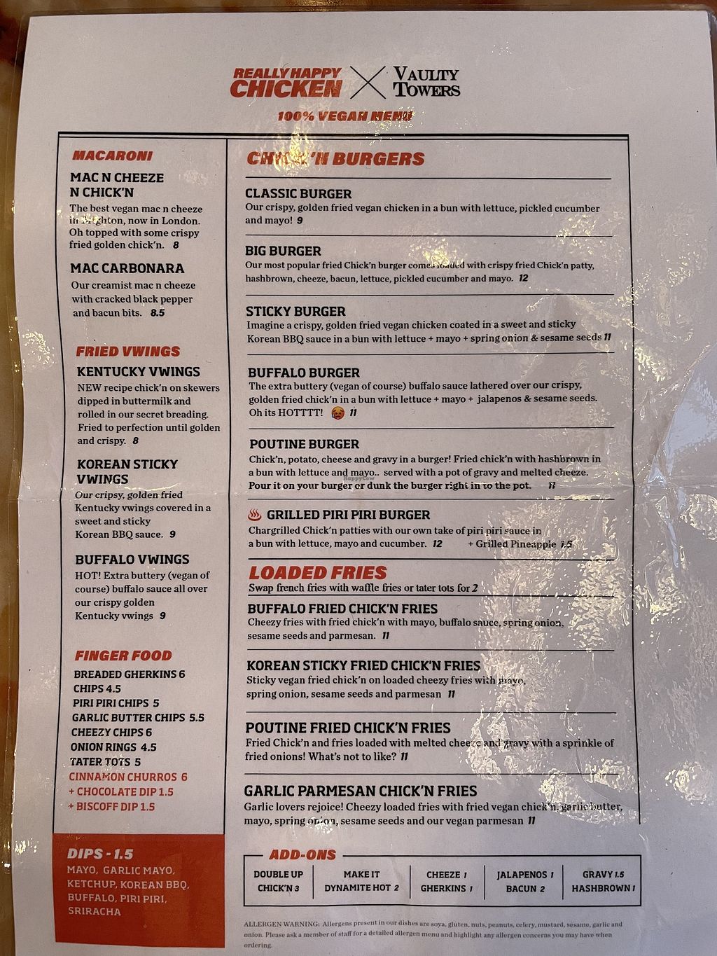 The menu