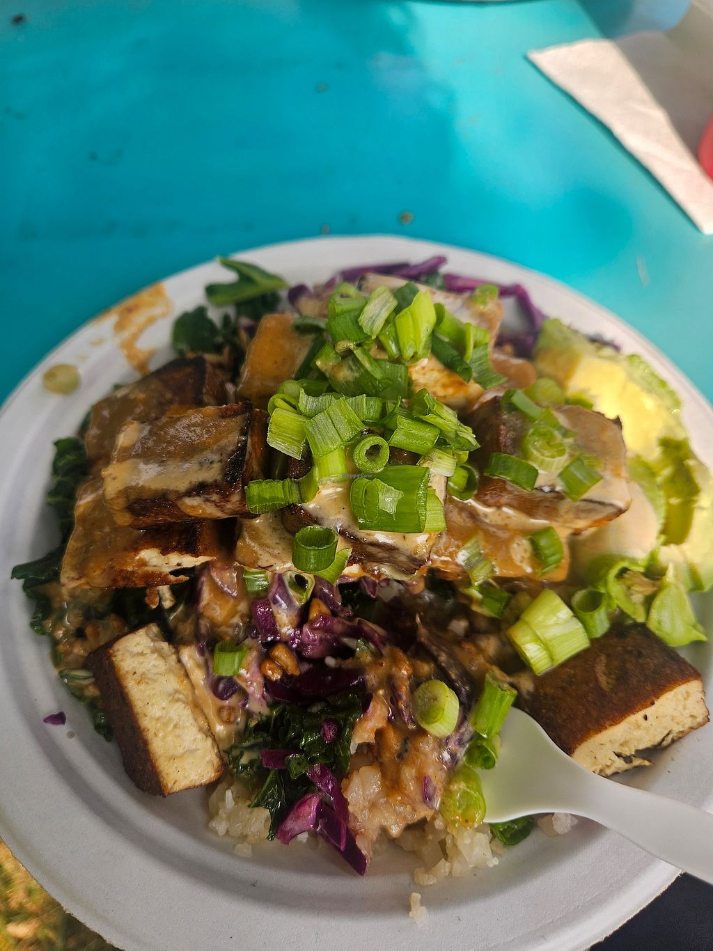 Our journey through a vegan desert ended with this delightful tofu Bowl. Honestly I'd say this is the best fried tofu ever and I usually prefer to just have my tofu heated and not fried but this could change my mind!