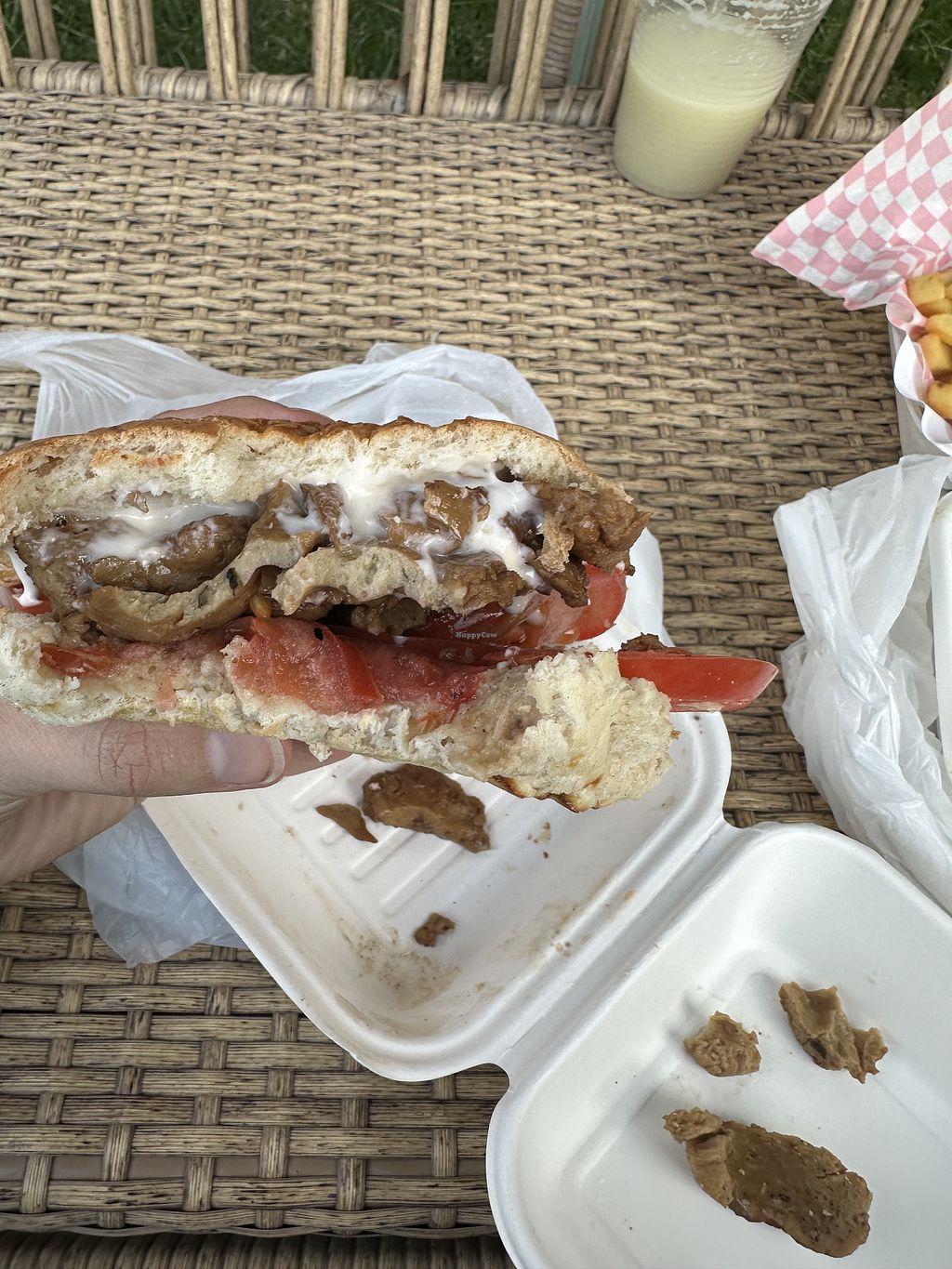 Cons: Sería bueno que tuviera más mesas en lugar fresco, Las papas fritas son un must que conquista a todos, Cuidado con veganesa en sandwich, mojaba el pan