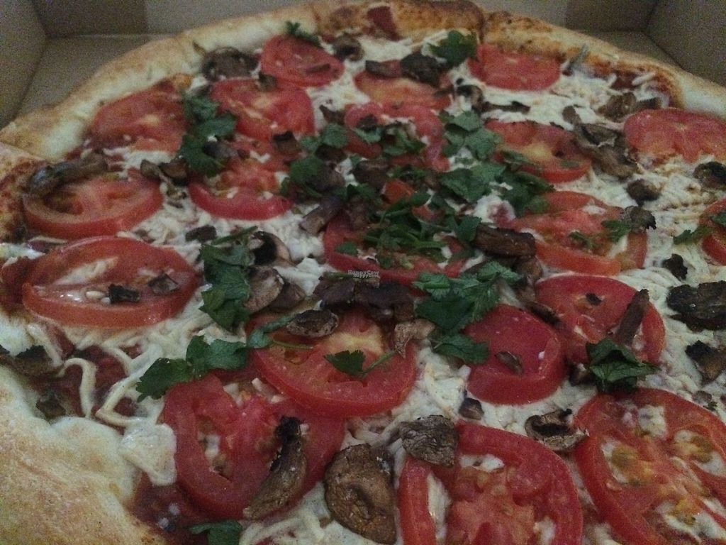 Pizza with tomatoes, mushroom and cilantro