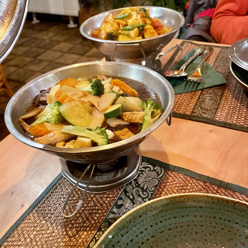 This is pretty much a normal Thai restaurant when it comes to vegan choices: Only one of their four curry pastes is vegan (at least they give a very detailed description of all ingredients at the beginning of their menu) and many other dishes are prepared with oyster sauce or the like, which can be replaced if you ask in advance. Also, the word vegan appears nowhere on the menu, but staf knows about it.