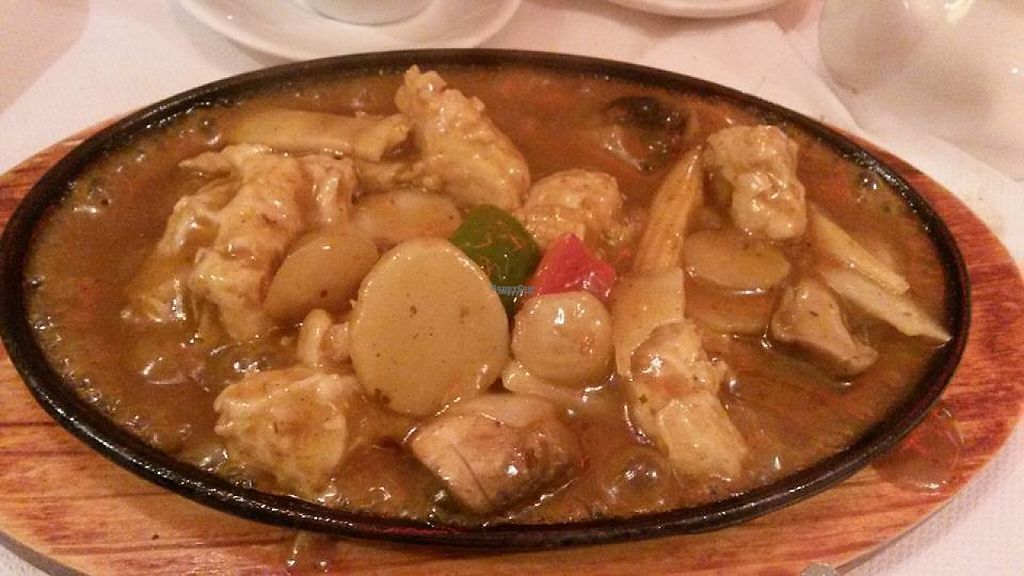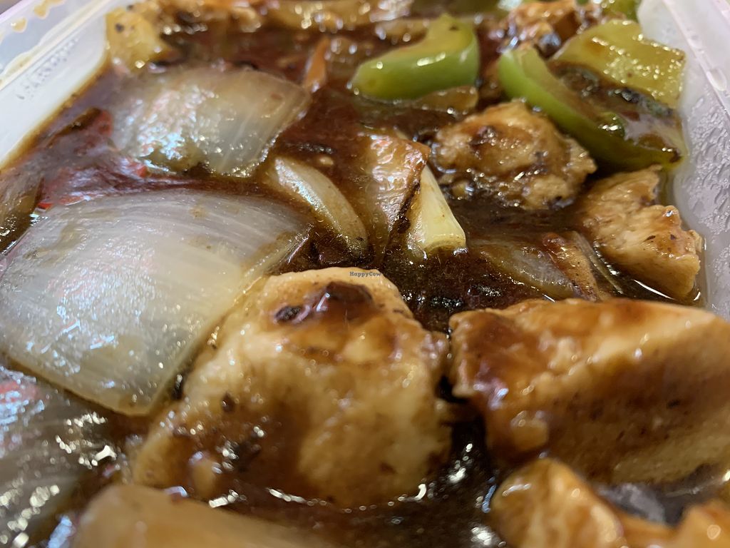 Veg chicken in black bean sauce and veg chicken in satay sauce