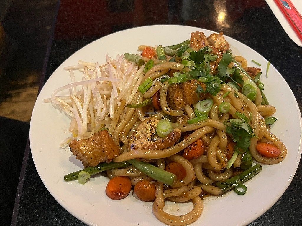 Serves meat, vegan options available. Asian fusion restaurant with clearly labeled menu. Example vegan offerings include fried rice, pad thai, udon noodles, yellow curry and more. Vegan proteins available. One of two locations. Open Tue-Thu 5:00pm-10:00pm, Fri-Sat 12:00pm-11:00pm, Sun 12:00pm-10:00pm. Closed Mon.