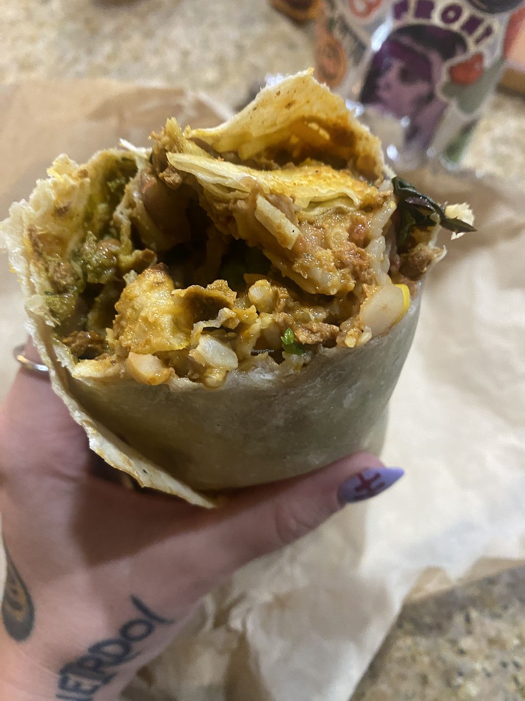 The Baja with chorizo & vegan cheese. Oh and their horchata ( made w…