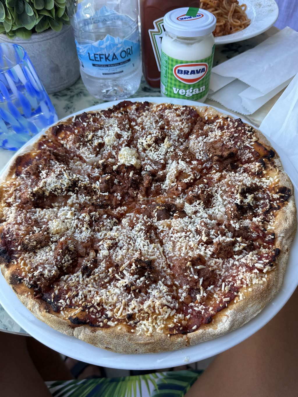 We tried both the vegan pizza and pasta. They were very good. There was even vegan mayo.