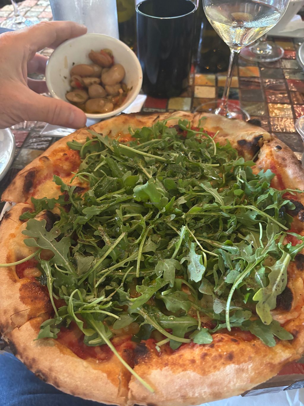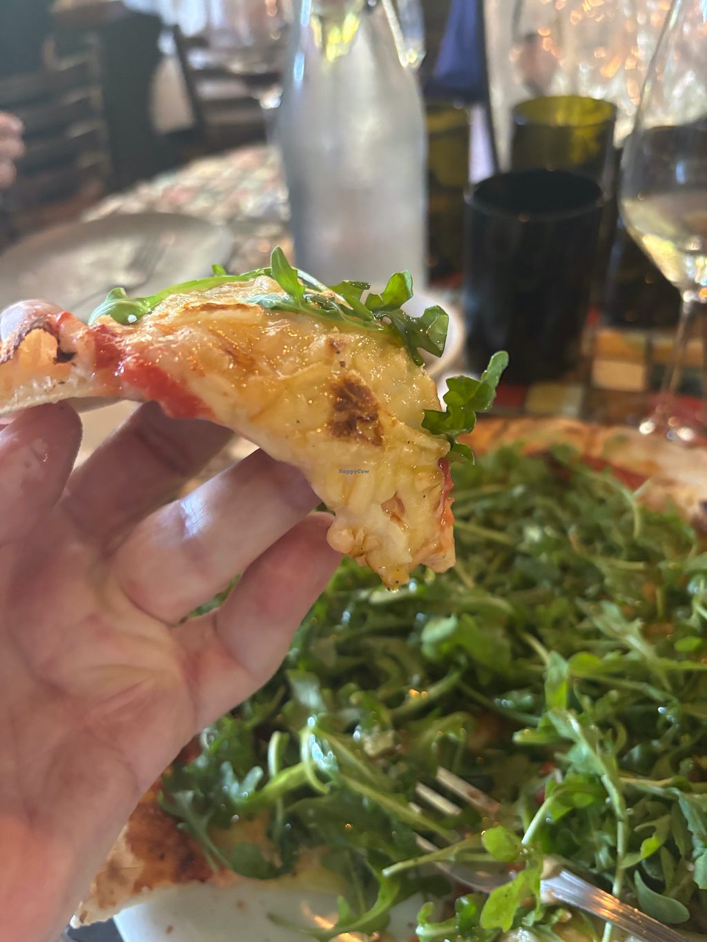 So Red or White has a nice pizza menu, but to make any of them vegetarian means no cheese, of course. But I recently bought some Violife vegan cheese BOGO at the store. So I called in advance to see if they would add it to my pizza. They said no problem. The added it and cooked it in their pizza oven. So my pizza consisted of their wonderful crust, cheese, arugula, tomato sauce (vegan)and balsamic. Delicious. As an appetizer, I ordered their Giant lima beans (vegan). I was craving pizza so it hit the spot. Great night out!