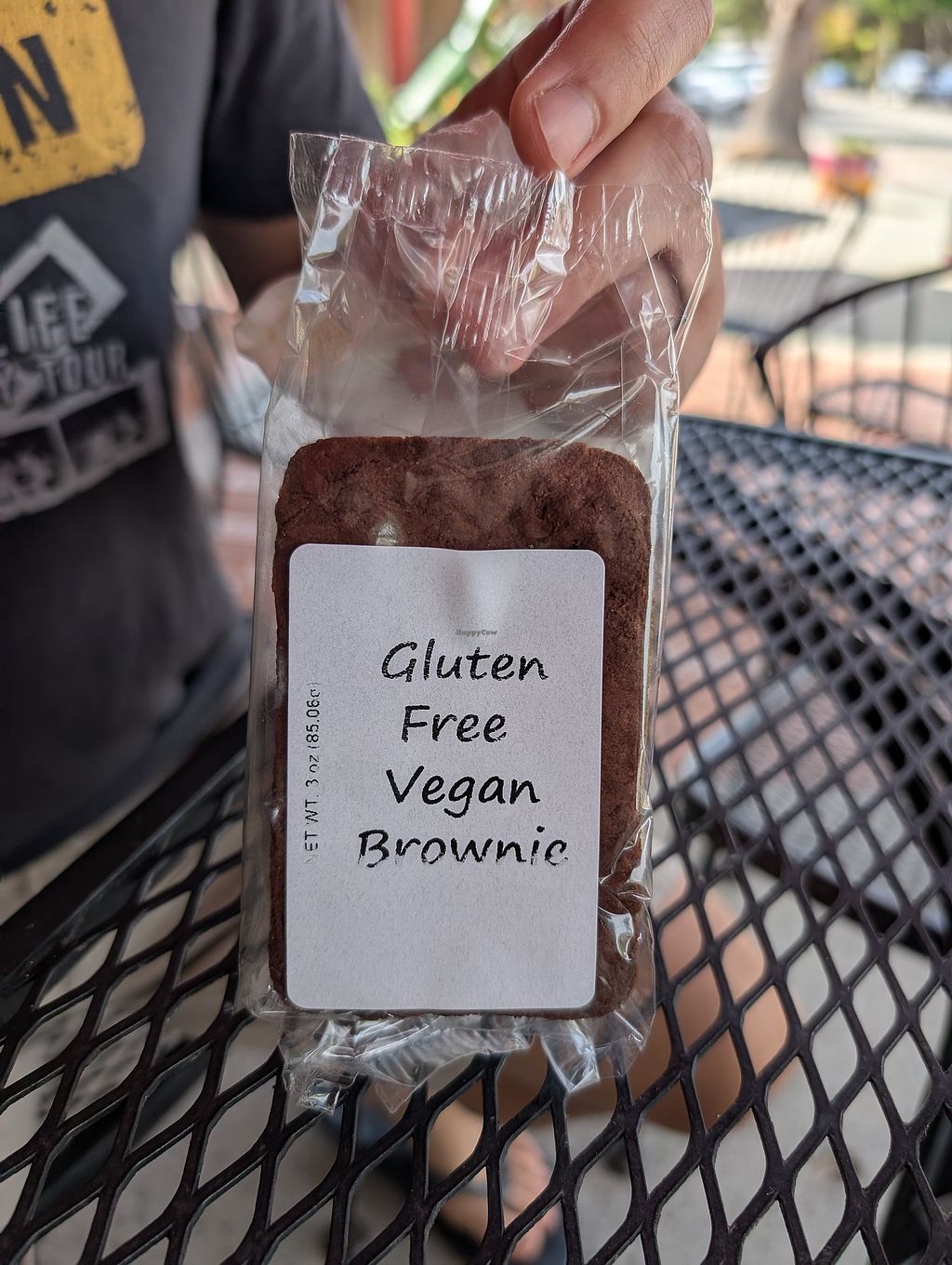Read morePros: A lot of vegan options, Great flavors and friendly staff, Delicious vegan and gf brownie