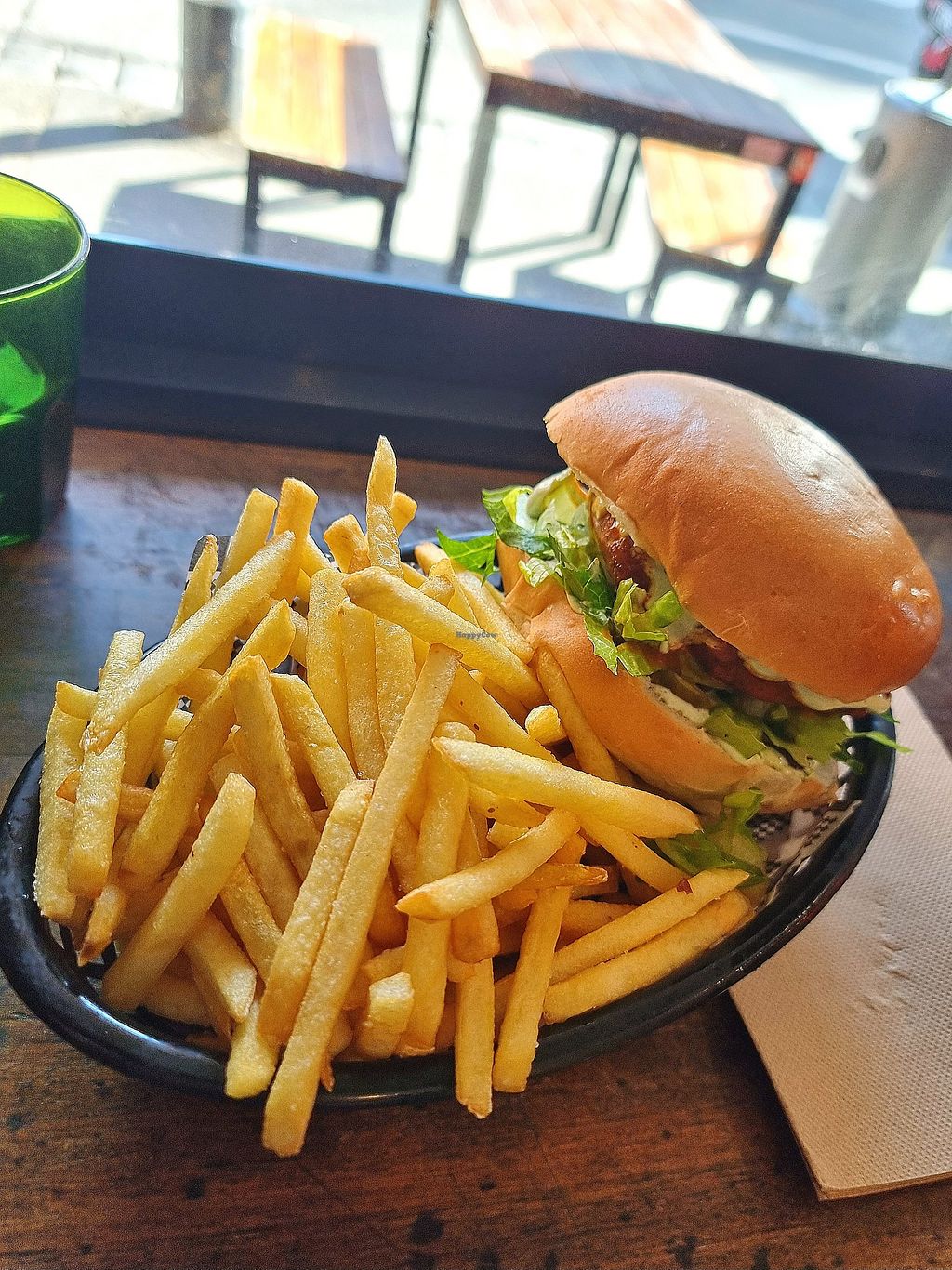 Read moreThe chips were generous, hot and crispy but just boring. The 'chicken' patty was somehow pasty and stringy at the same time. The sauce was amazing but the bun was very strange. Every single bite of the burger required time scraping the sticky bun from my teeth.