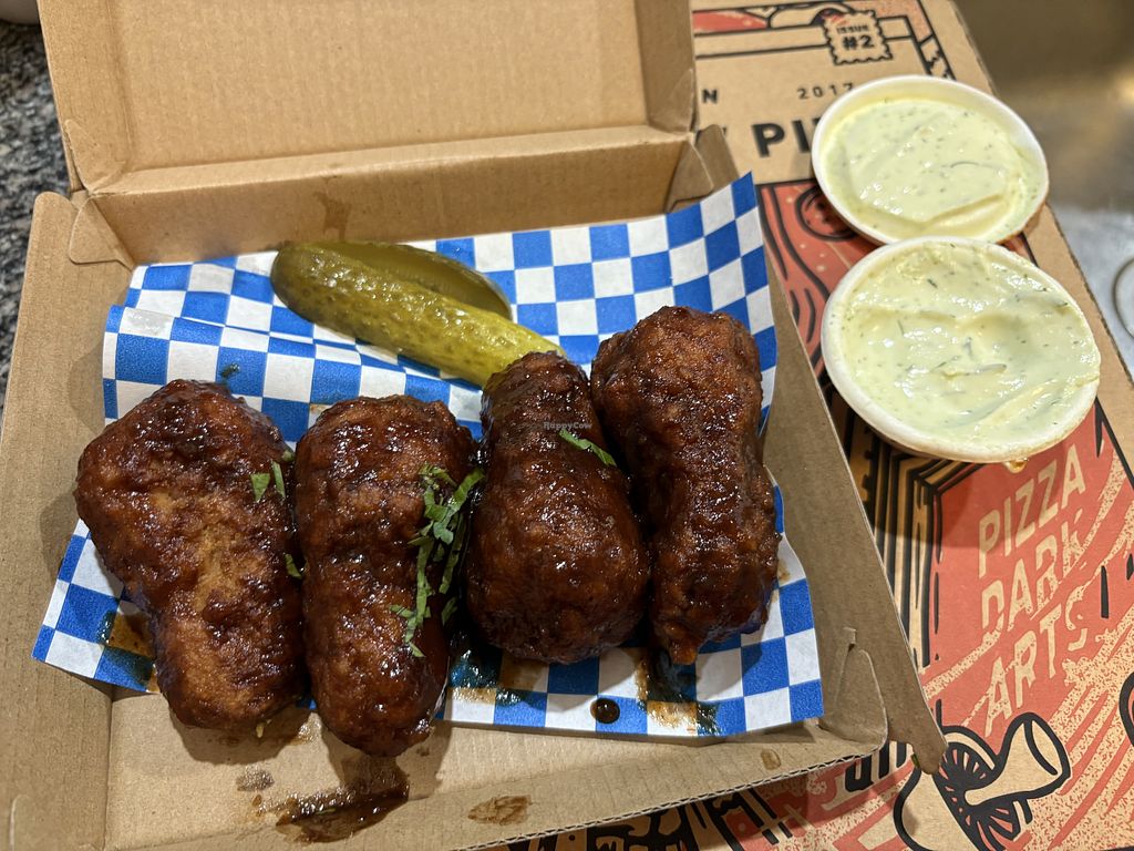 We tried the Not Wings, BBQ Chicken pizza, and a special Meatball pizza. All were outstanding quality plant-based proteins and well-made wood fired pizza with a lot of spice and flavour. What I want to mention most is the efficient and thoughtful service! No sooner had we ordered than a drink appeared immediately, our waiter remembered from our booking that we were celebrating a birthday and was so kind and friendly to us, and a waitress offered us a takeaway box to take home leftovers very quickly after we’d finished eating - great attention to detail on all fronts made us feel really special and like it was money well-spent. Thank you