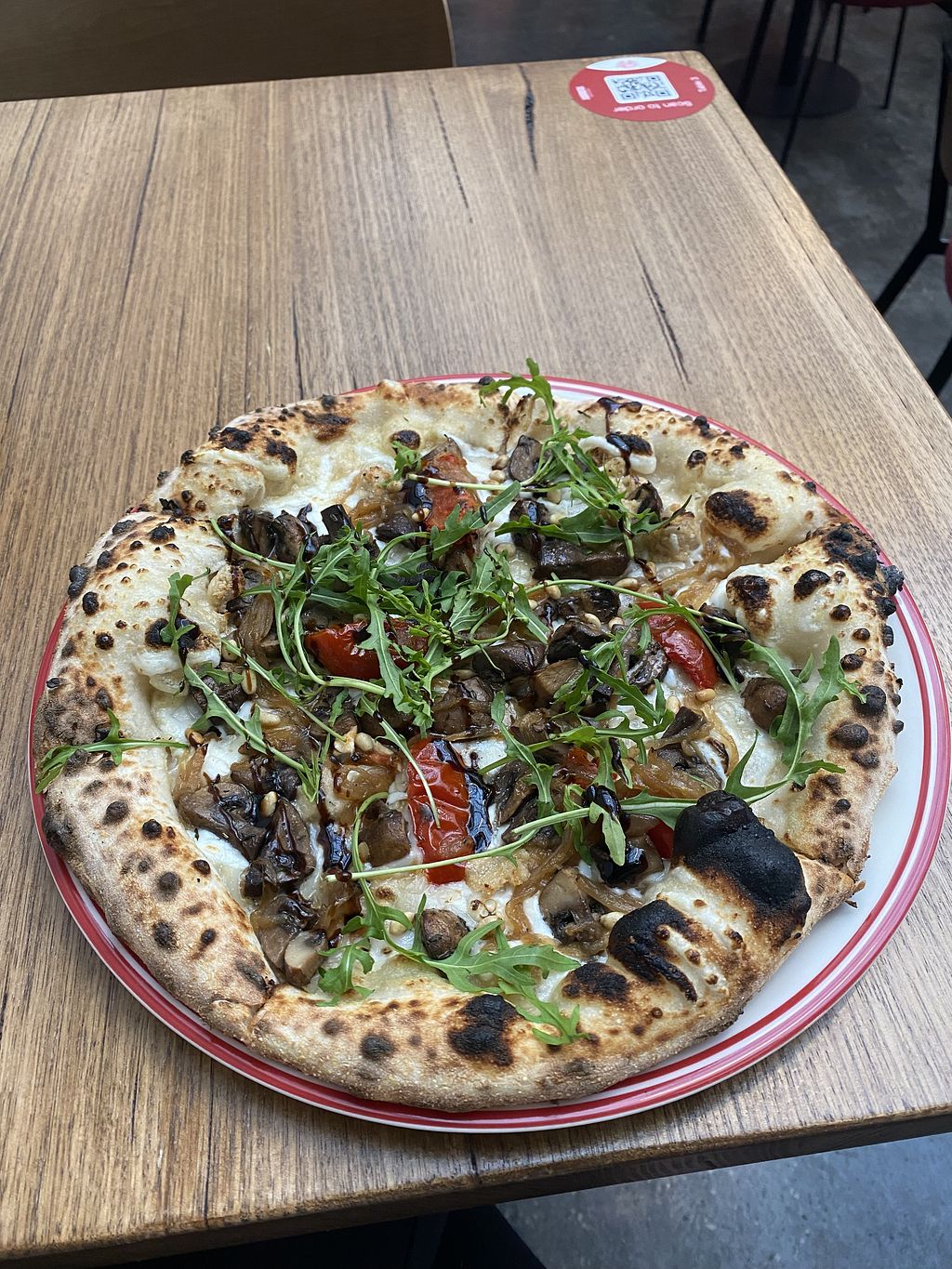Cons: A bit of flop in pizza center, Order through qr