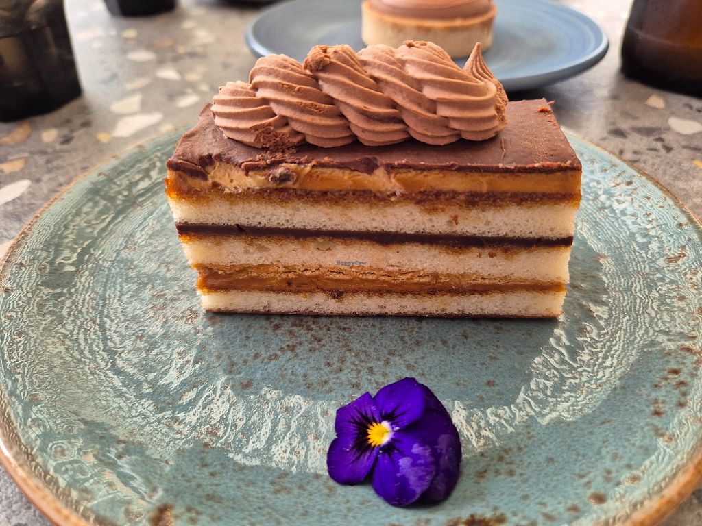 Coffee and chocolate opera cake $10.00: sadly the sponge layers were n…