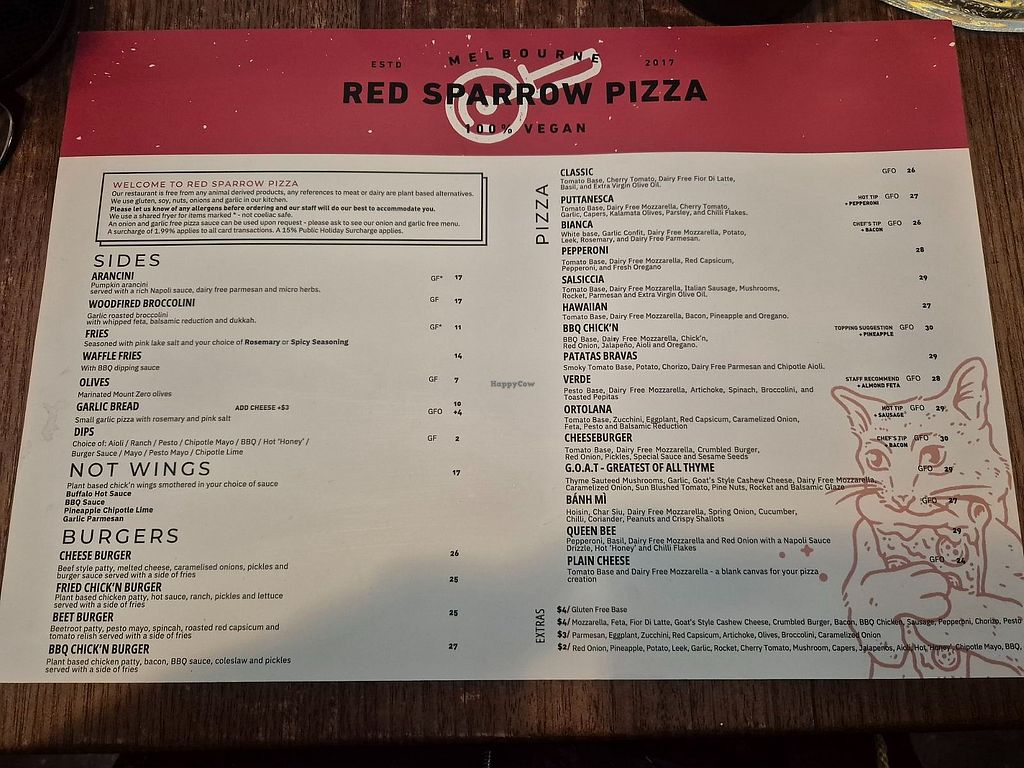 Ordered a couple of to go pizzas which were so incredible we did exactly the same thing the next evening. If you're in Melbourne Red Sparrow is a MUST.