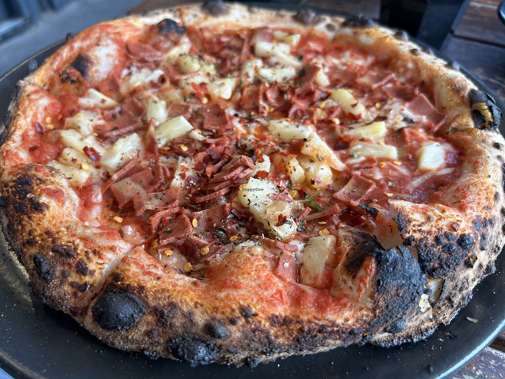 How I was missing Hawaiian pizza (Yes pineapple belongs on pizza) Still yet to find a vegan pizza that trumps Red Sparrow. Also highly recommend the patatas bravas pizza.