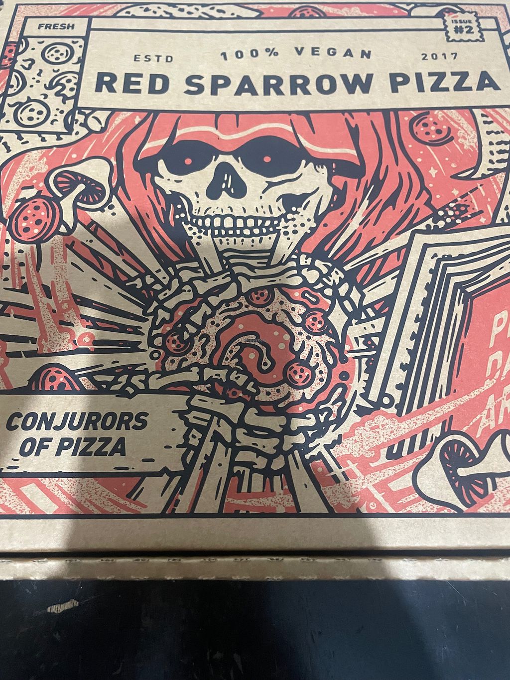 I ordered takeaway from Red Sparrow last night and remembered that it is indeed delicious! We ordered 3 pizzas between 5 people which was a healthy amount for us. For variation we chose a tomato based pizza (ortolana), white based (bianco), and pesto based (verde). The ortolana was quite sweet and the tomato sauce left the base quite soggy. My favourite was the verde, with a lovely balance of flavours and textures - it even had little pansies on top! Bianca was delicious too. Can’t go wrong was potato and tangy white cheese on a pizza. Like most vegan pizza places, I find their pizzas with more veggie toppings way more satisfying than the mock meat options.