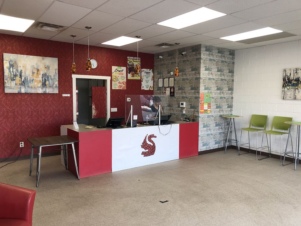 I had a small cauliflower crust vegan cheese pizza, and it was great! Perfectly cooked and the sesame seeds on the edge of the crust were delicious. The pizza took only 15 minutes to cook as promised. There are chairs for those waiting but it is not really set up for dining in. Staff was friendly. The parking lot is available from southbound Albert and has just 2-3 spots.