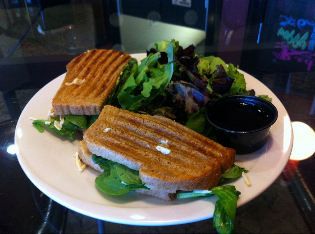 Serves meat, vegan options available. Panini sandwiches, salads, pasta. Most items can be requested with veggie meat or soy cheese for extra charge. Usually has vegan specials for the week. Prices inexpensive to moderate. APR 2016 REPORTED SHUT.
